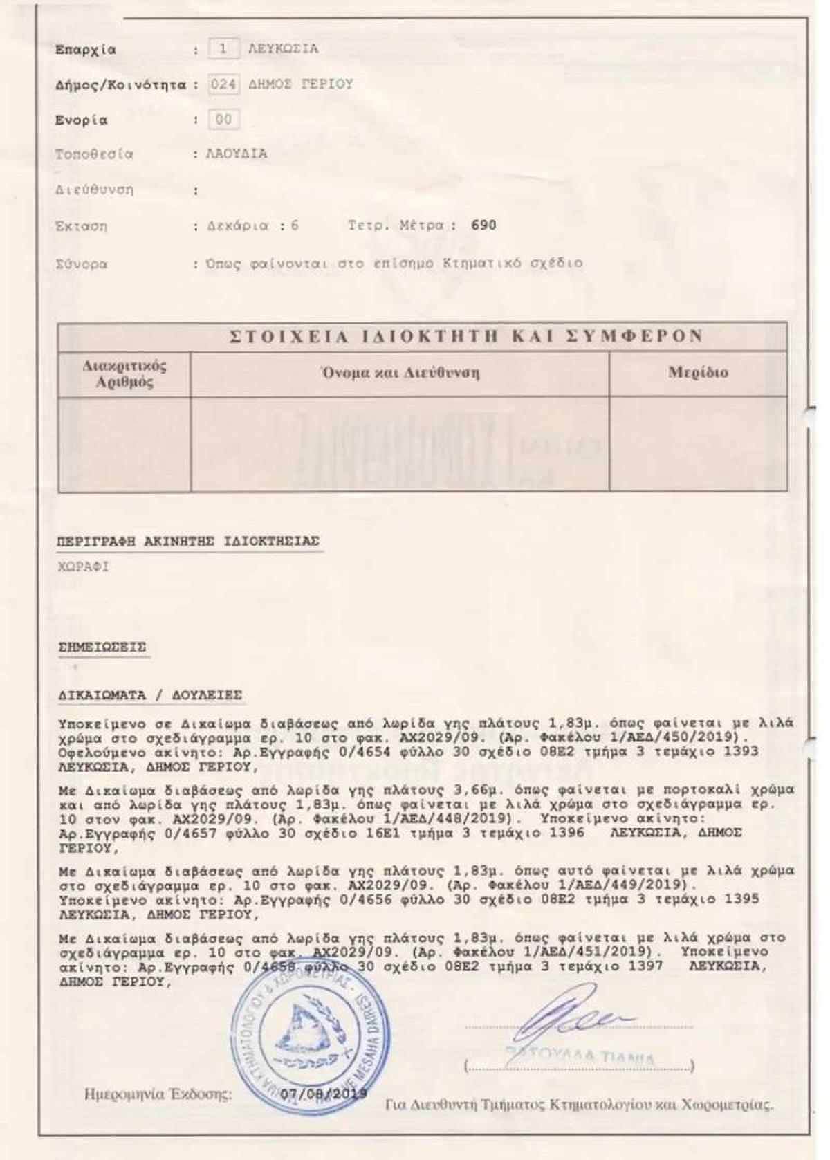 Agricultural land 6689 m2 Price: €135.000 Plot area: 6689 Plot Type: Agricultural 6689 Square Meters Γα4 Agricultural land for sale located at Geri Municipality with title deeds.Φύλλο : 30