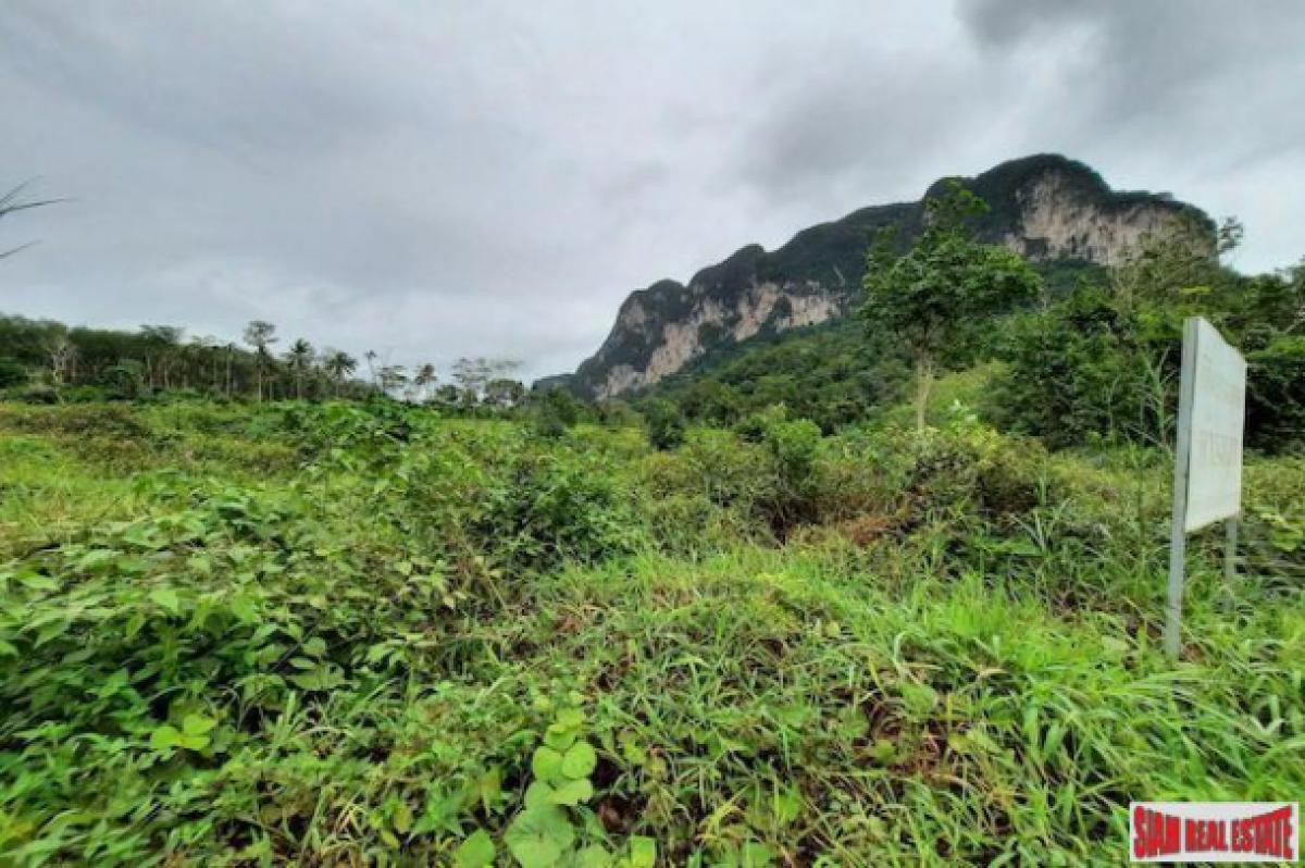 Over 16 Rai of land is for sale with exceptional mountain views in the Khao Thong area of Krabi. The last is 26,000 sqm or 16-1-0 Rai and is located next to the main road. The surface of the land is mix between flat and a few slopes. Village water and electricity are ready to set up.The land is about 58 meters in width and 450 meters in depth and is a good size to portion out to build a house.