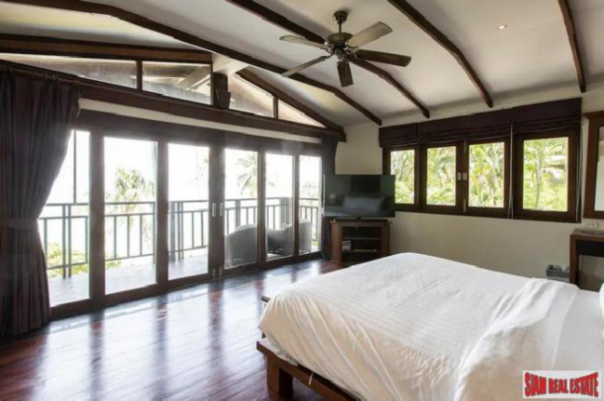 Absolute beachfront property with panoramic sea views of Phang Nga Bay and facing north to James Bond Island. This three bedroom, four bath home has a spacious open plan living space downstairs that includes a dining room, living room and modern Western kitchen. The dining room has seating for six and there is a breakfast bar with three stools for casual dining.Upstairs there are two bedrooms and two contemporary bathrooms. The huge master bedroom has a balcony with full panoramic sea views. A third bedroom and bath is located downstairs and there is wood flooring throughout the house.