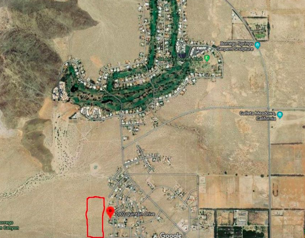 Possible subdivision/ nice one next door. Dream Home,Drill own well if city not available. Buyer to check with County for subdivision requirements. 2020 plan. Borrego Water Dist. should consult with public works for grading and flood control info. Utilities available. Property does have legal access. Close to another development, Close to DE Anza golf course. Neighborhoods: Borrego Springs CA. Other Fees: 0 Sewer: Perc Test Required.