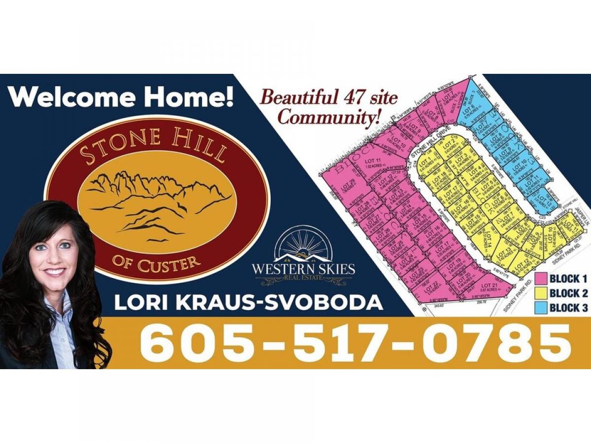 Beautiful lots from .42 acres up to 1.06 acres available with amazing views of the Needles. Buy now and build later! These lots offer city water amp; sewer on site, underground electricity and fiber optics through Golden West. Now is the time to own your piece of dirt in the beautiful Black Hills. Covenants will allow modulars on certain lots with modifications and approval from the ACC. Buy today and build when you are ready!! List price of lots are NOT negotiable Listed with Lori Svoboda @ Western Skies Real Estate in Custer 605+517--0785