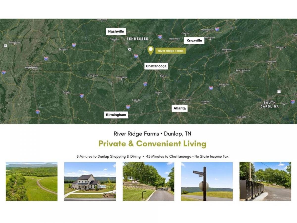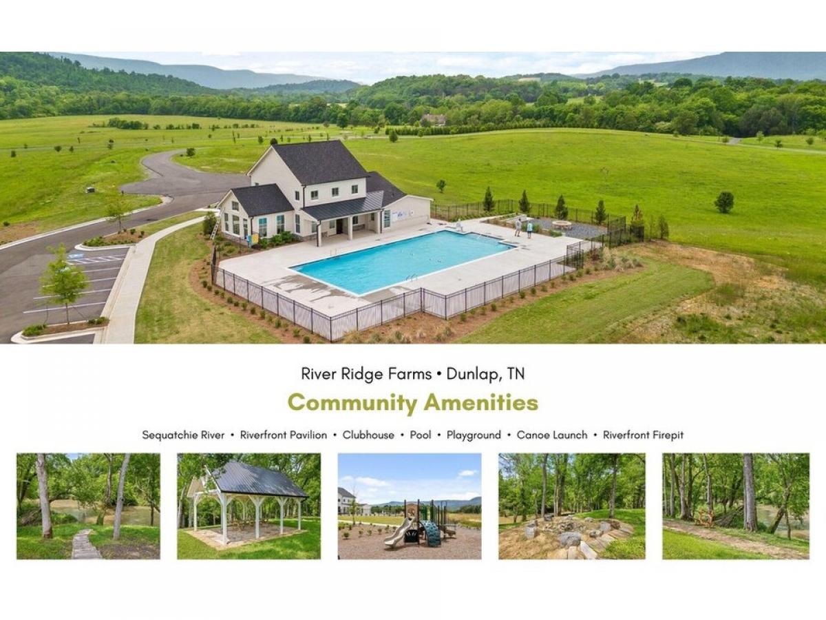 GATED, MOUNTAIN community perfect for your dream home! Only 45 minutes from Chattanooga, FLAT and CLEARED lot 24 is nestled near the peaceful Sequatchie River with approximately 1.09+/- acres. River Ridge Farms is a gated community, featuring a clubhouse, pool area, and playground. Begin immersing yourself in nature and enjoy afternoons on the water. Whether using the community canoe launch, a summer picnic at the riverfront pavilion, or spending an evening roasting marshmallows over the fire pit by the riverbank, create unforgettable memories here. Start building now with power, water, gas, and internet available. This is a dream location for your next investment, personal home, or to enjoy retirement. Take advantage of the no state income tax in TN! Located 8 minutes from Dunlap, offering numerous shopping, grocery, and dining options, 35 minutes from Fall Creek Falls State Park, and 45 minutes from downtown Chattanooga. Schedule your private tour today! (Any and all property lines on photos are simulated and are approximate. Buyer is responsible to do their due diligence to verify that all information is correct, accurate and for obtaining any and all restrictions for the property deemed important to Buyer.)