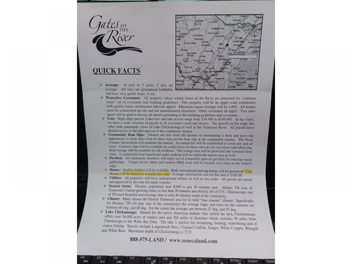 This lovely lot sits up on a ridge with a view that goes on for miles. From your back porch you would see a large farm and the front view will be of rolling hills. This safe secure gated community has a boat launch, docks, pavilion and large BBQ pit - a place to meet your neighbors, fish or just relax surrounded by nature. All utilities are underground and at the road. Great location just 1 hour to either Chattanooga or Knoxville. You will need a gate code to enter this community.
