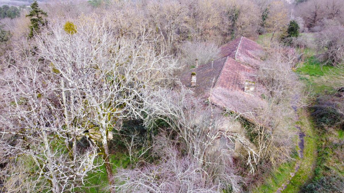 Former farm house to rehabilitate, comprising a dwelling with an adjoining garage and a cellar, as well as a detached outbuilding on approximately 6 hectares of land. Bucolic environment at the end of a path between two villages 15 minutes north of Bergerac, 1 hour 15 minutes from Bordeaux, on more than 6 hectares of woods and meadows, with a well, old house with outbuildings to be completely restored.Electricity and town water on the land.