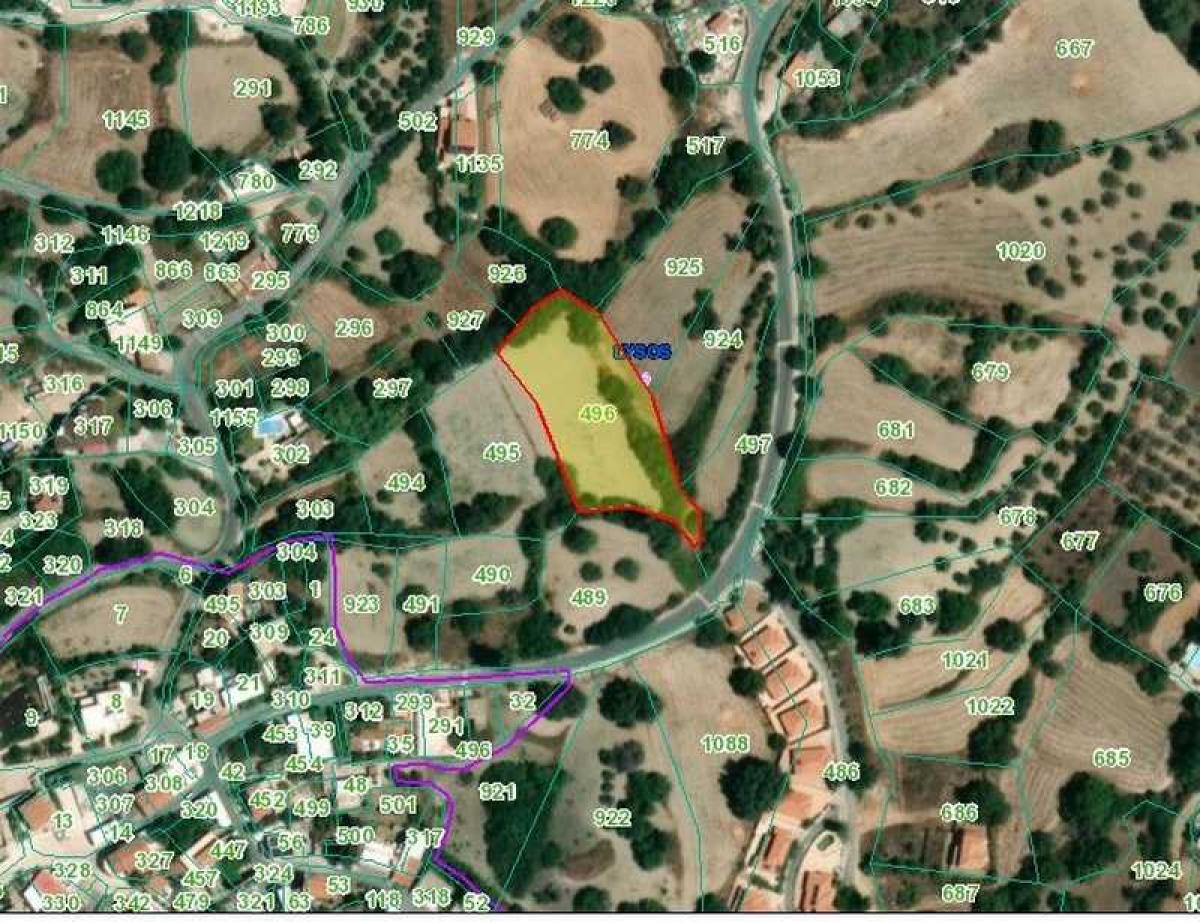 Residential plot on the outskirts of the centre of the peaceful village of Lysos. Quiet location just off the registered road but needs application for access. gradient: flatIdeal for country lovers and tranquil way of life. Ideal for a small homestead.
