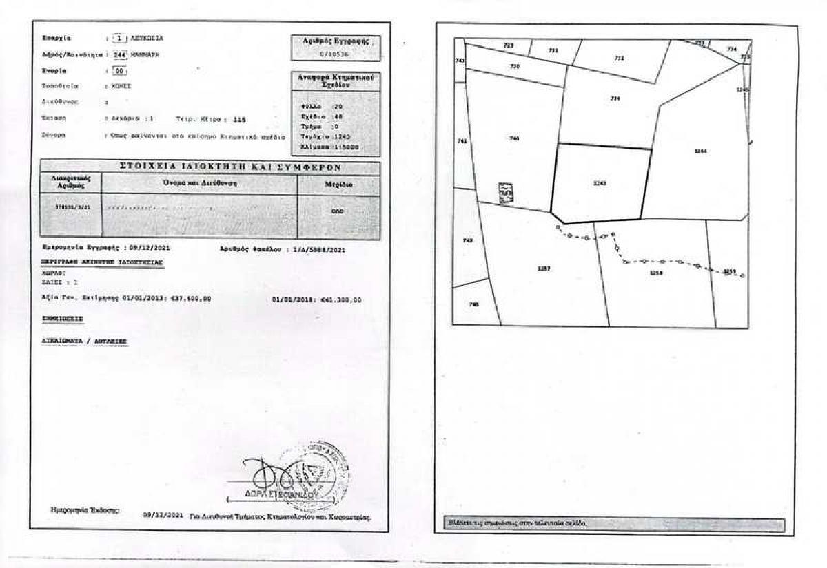 Το ακίνητο βρίσκεται στην κοινότητα Μάμμαρι, της επαρχίας Λευκωσίας, με αριθμό εγγραφής 0/10536.