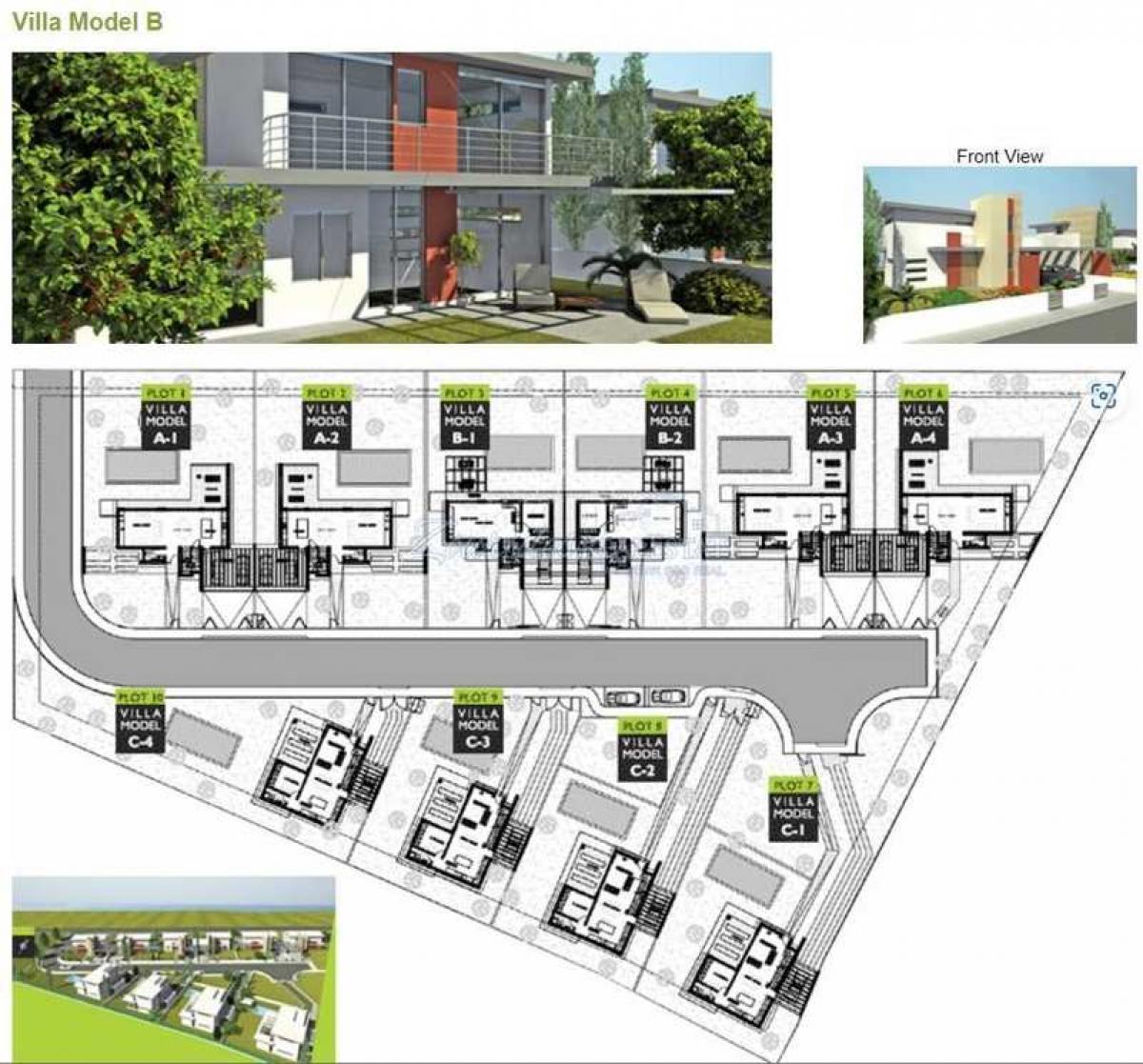 The complex comprises of ten luxury three bedroom two stories villas varying from 170m2 to 220m2 covered area, in large plots from 450m2 to 750m2 area each.