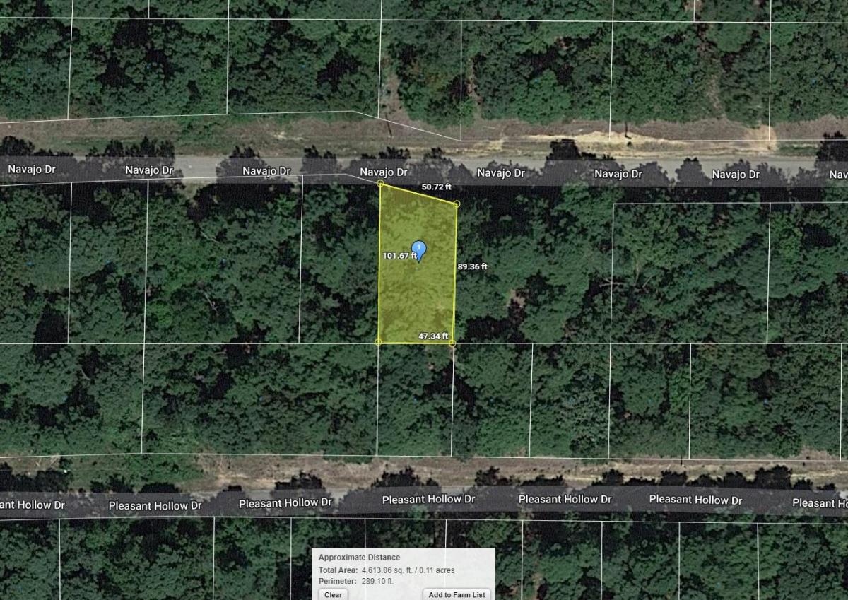 This 0.11 acre lot is located in Avinger (Indian Hills), Texas and the address is Navajo Drive, Avinger, TX 75630. Avinger is located 152 miles East of Dallas, Texas and sits just 15 miles or 20 minutes North of The Lake O' The Pines. Lake O' the Pines includes about 18,700 acres of water and 9,000 acres of land located in the piney woods of Northeast Texas. Recreation opportunities are numerous with camping, boating, fishing, hunting, watchable wildlife, and bird watching, including wintering bald eagles. Features: Close to Lake O the Pines Only $200 Down and $200/month for 33 months = $6800 or Discounted Cash Price: $5500 PROPERTY DETAILS APN: 31104 Address: Navajo Drive, Avinger, TX 75630 County: Marion State: Texas Size: 0.11 Acre Dimensions: 50' x 102' x 48' x 90' Legal: INDIAN HILLS SEC C LOT 341 Terrain: Flat Access: Paved Road Power: Power in the area Water: Water in the area Sewer: Would be by Septic Taxes per Year: $26 HOA Fees per Year: $87 GPS Coordinates (center) at the road: 32.822927, -94.630579 --- Northwest Corner: 32.823049, -94.630660 --- Northeast Corner: 32.823047, -94.630493 --- Southwest Corner: 32.822825, -94.630663 --- Southeast Corner: 32.822821, -94.630502 Elevation: 289 BUILDING INFORMATION Zoning: TX-Marion-Avinger-Indian-Hills-Harbor-Sec-A-B-C-D Time Limit to Build: No time limit to build Site Built Homes Allowed: Allowed 600 min sqft Modular Homes Allowed: Allowed Manufactured Homes Allowed: Allowed Mobile Homes Allowed: Allowed Tiny Homes Friendly: Not Allowed ALLOWABLE USES Full-Time RV Living Allowed: Not Allowed RV on the Property While I build: Allowed Camping in a RV Allowed: Allowed 14days max a month