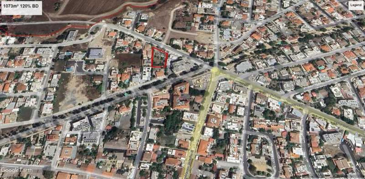 Large residential plot of 1037m2, Kaimakli area.The property falls within the residential zone Ka4, with 120% maximum building density, 50% maximum coverage coefficient, in 3 floors and maximum 13.5m height.