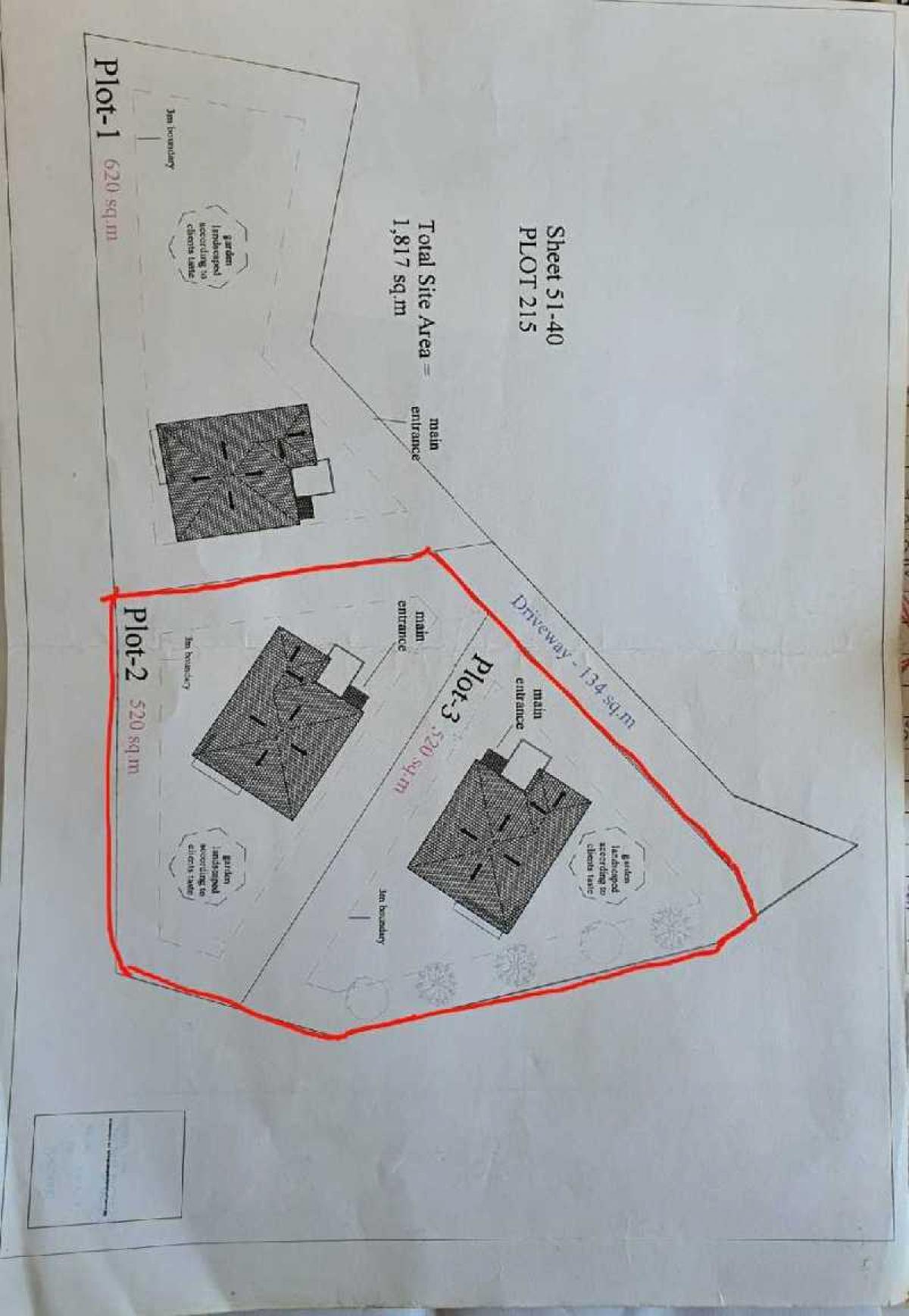 A permit was previously issued for two houses within 1050 sq m, and to be divided into two plots of 540 sq m each.. related plan in the photos...