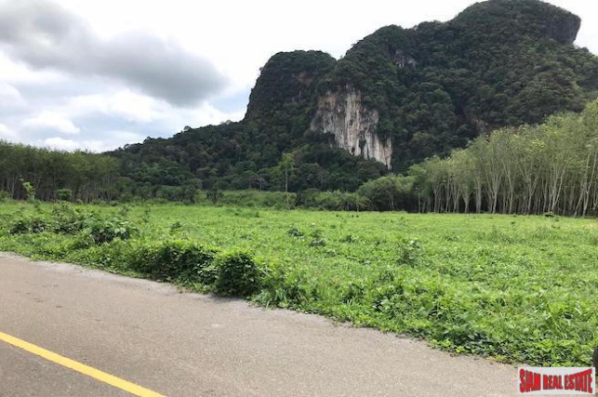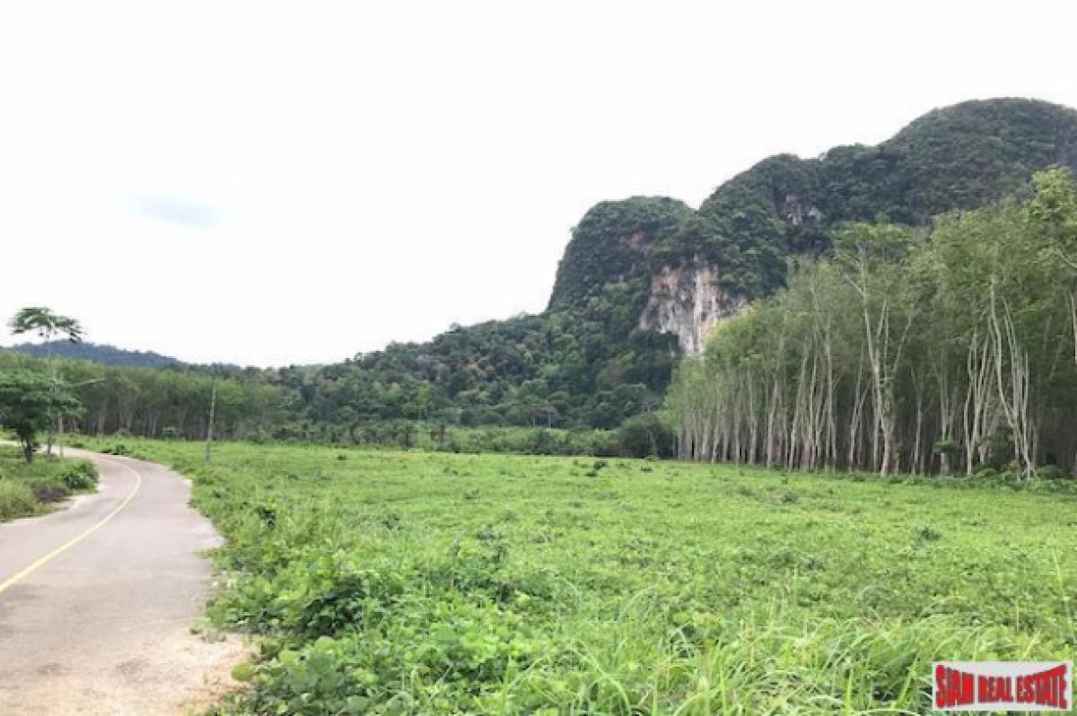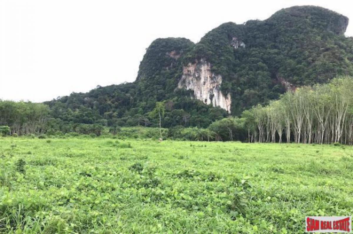 Over 16,000 sqm of land is for sale in the Nong Thaley area of Krabi. (10-1-89 Rai) The land is situated in the suburbs and surrounded by mountains. This is a big land plot and can be used for many purposes such as development, agriculture or divided for sale.The electricity and government was are already set up and there is a tarmac access road. The land is about 1 km away from the main road and it takes about 12 minutes to Ao Nang or Hat Noppharat Thara. Krabi International Airport is about 39 minutes.
