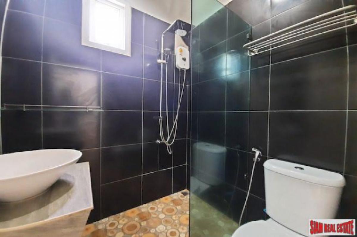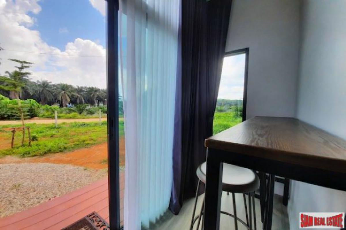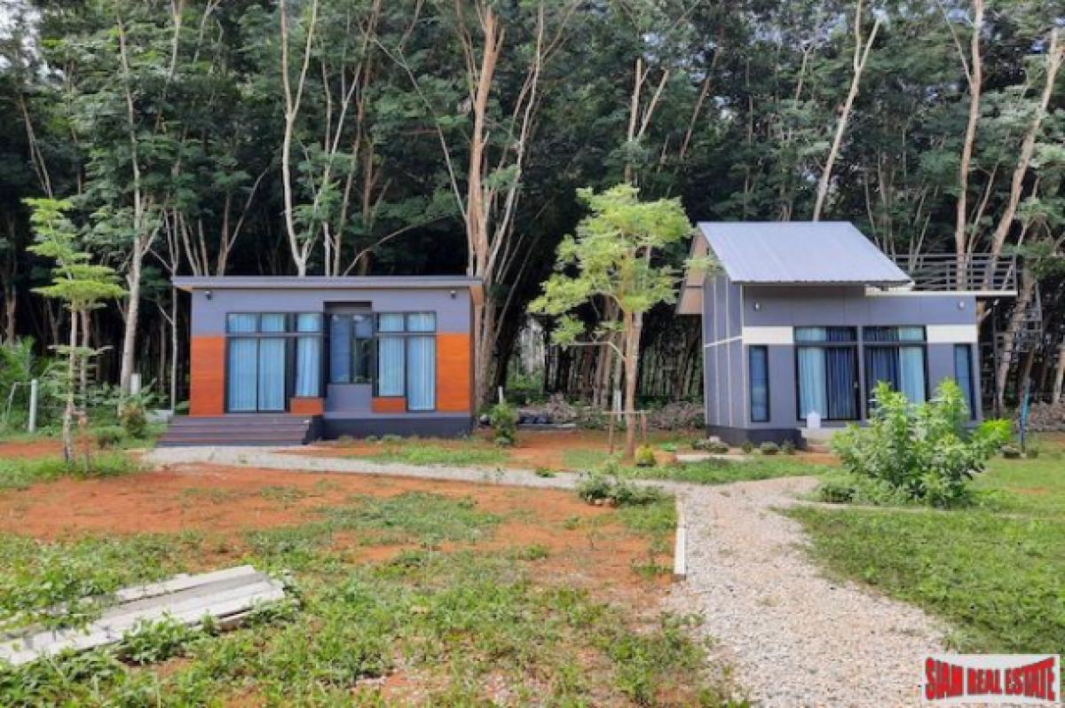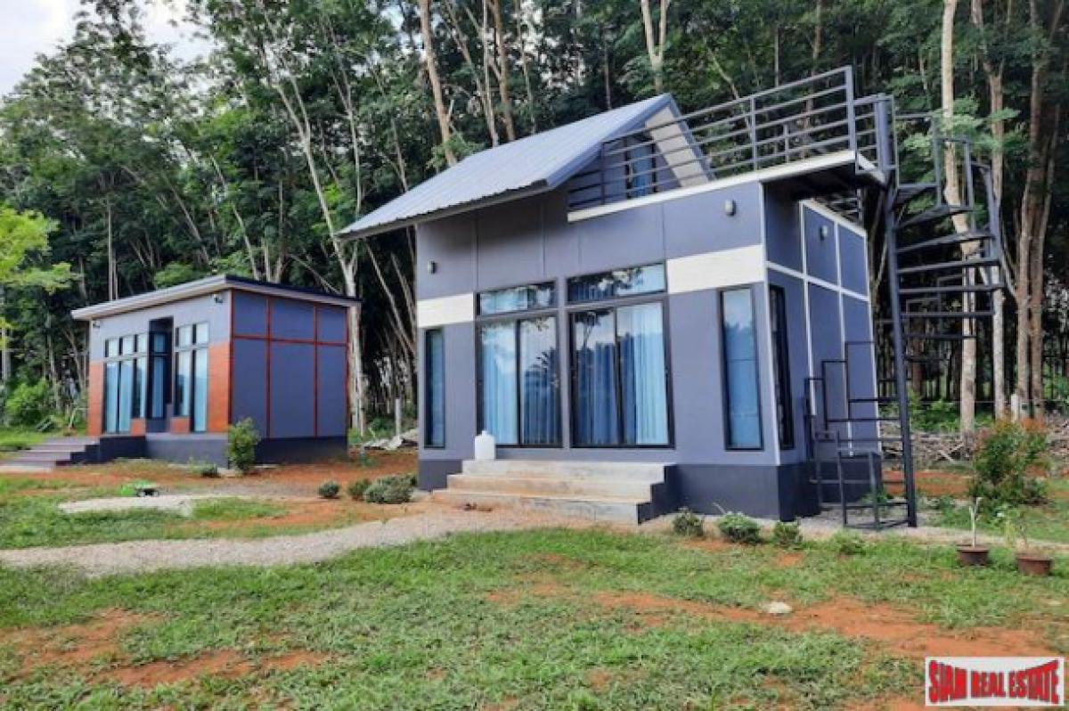 This is a good sized land plot for sale in a quiet and sparsely populated area of Nong Thalay, Krabi. The front view is of the spectacular Krabi mountains and the side area is a rubber plantation and a mountain with a cave.The land size is 1,917.6 sqm large and has three small houses on the property. In addition there is a building for a kitchen and a shared bathroom. There is lots of space to building a big house or more small houses for a resort business.
