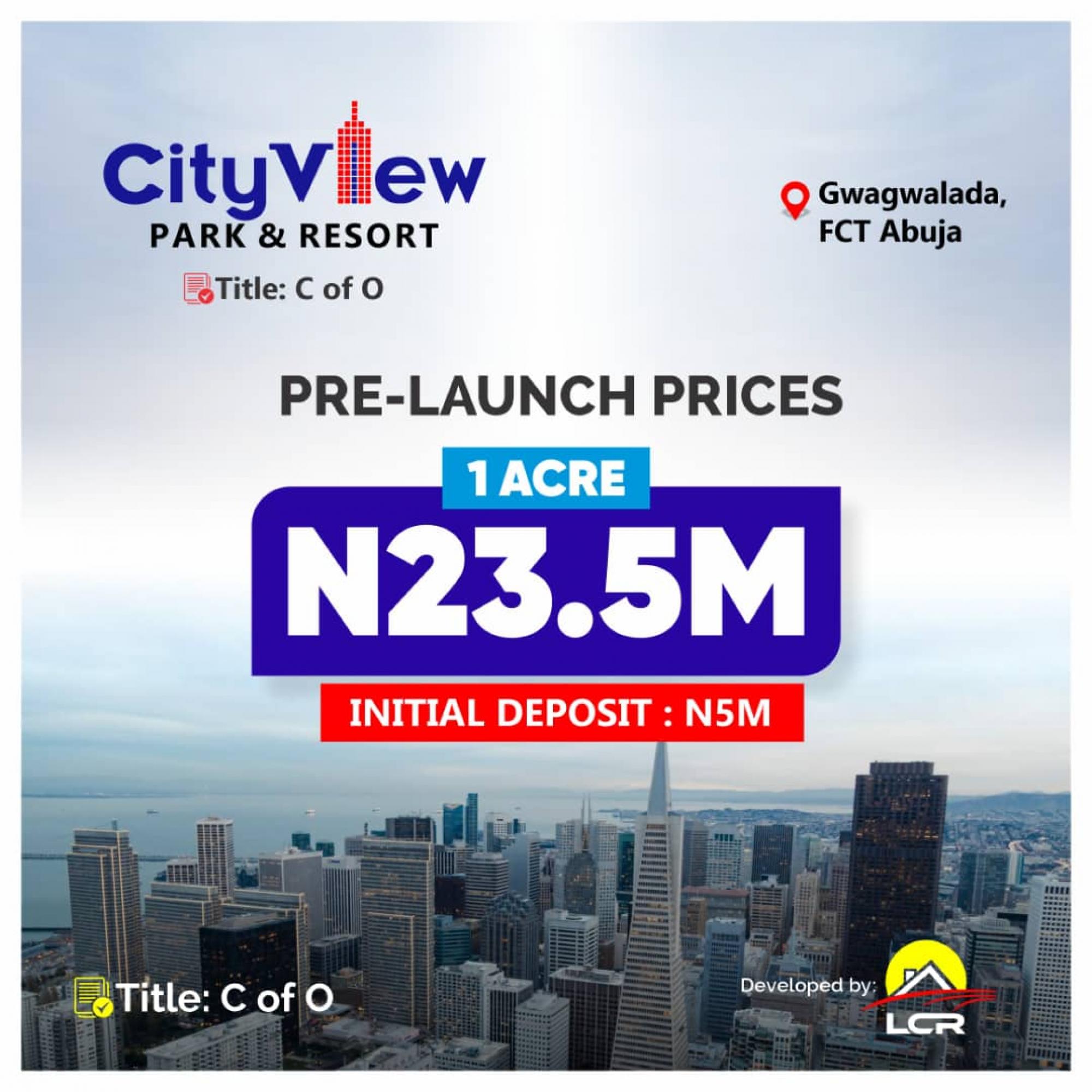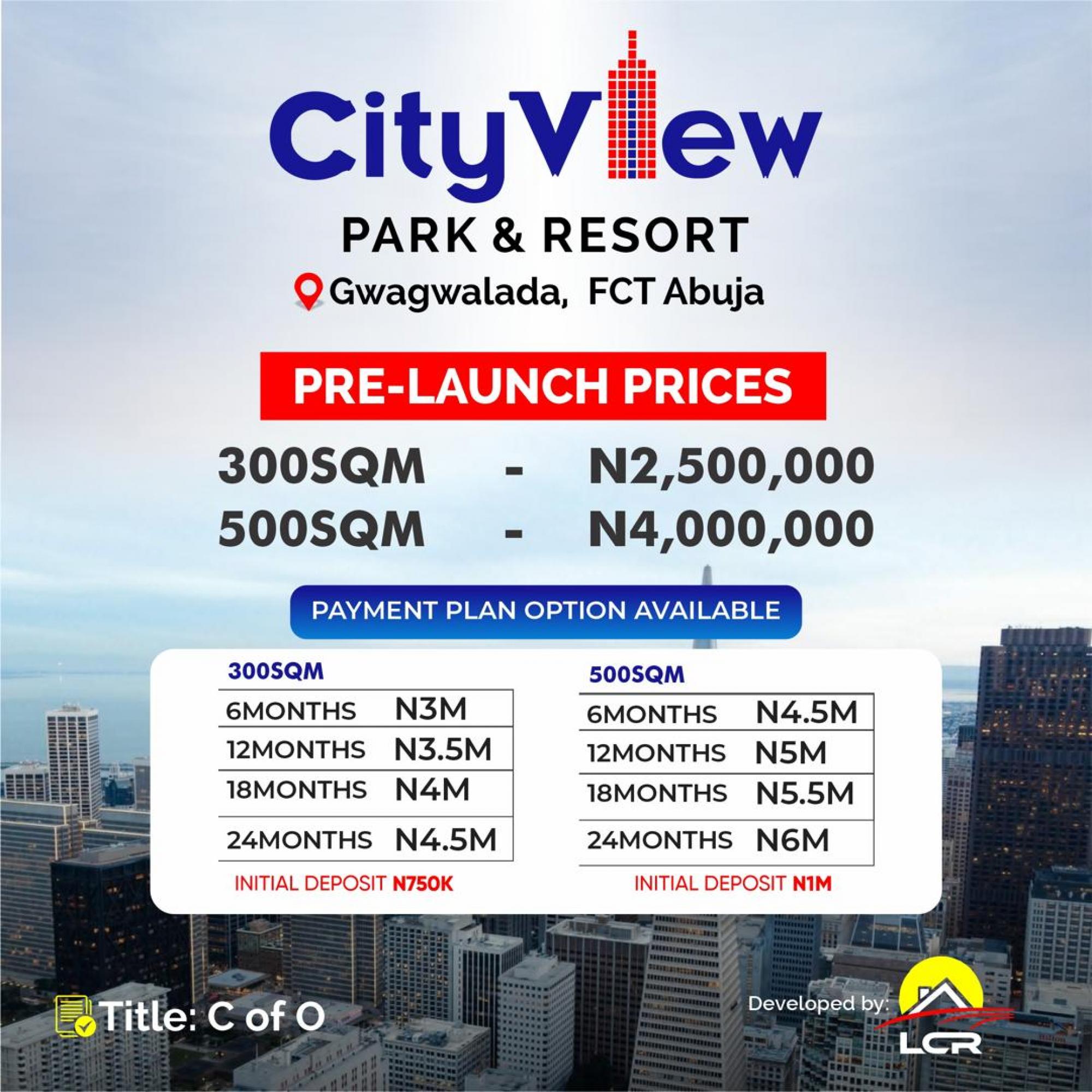 2025 UPDATED LISTING OF CITY VIEW PARK & RESORT, GWAGWALADA, ABUJA. Introducing City View Park and Resort, a premier residential development situated in Gwagwalada, Abuja. Nestled atop a hilltop, this exquisite estate provides panoramic views of the city skyline, harmonizing tranquility with urban elegance. This estate offers exceptional value for money and is reasonably priced. Experience the epitome of luxury in the heart of Nigeria’s capital city. *Location*: Gwagwalada, Abuja. *Title* : C of O Sales Price; Outright Payment (0-3months) 300sqms - ₦2.5M 500sqms - ₦ 4M Initial Deposit- 300SQM - ₦750K 500SQM - ₦1M *Neighbourhood* - university of Abuja - Magic Land - Nnamdi Azikiwe Airport - Central Business District - Lugbe *Highlights* - City-view Environment. - Gate House - Perimeter fencing - Adequate Road and Street Lighting - Leisure and Lifestyle Don’t Wait To Buy Land, But Buy Land and Wait!!! For Enquiries/ Site Visits, contact us directly