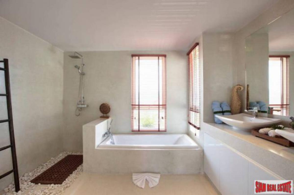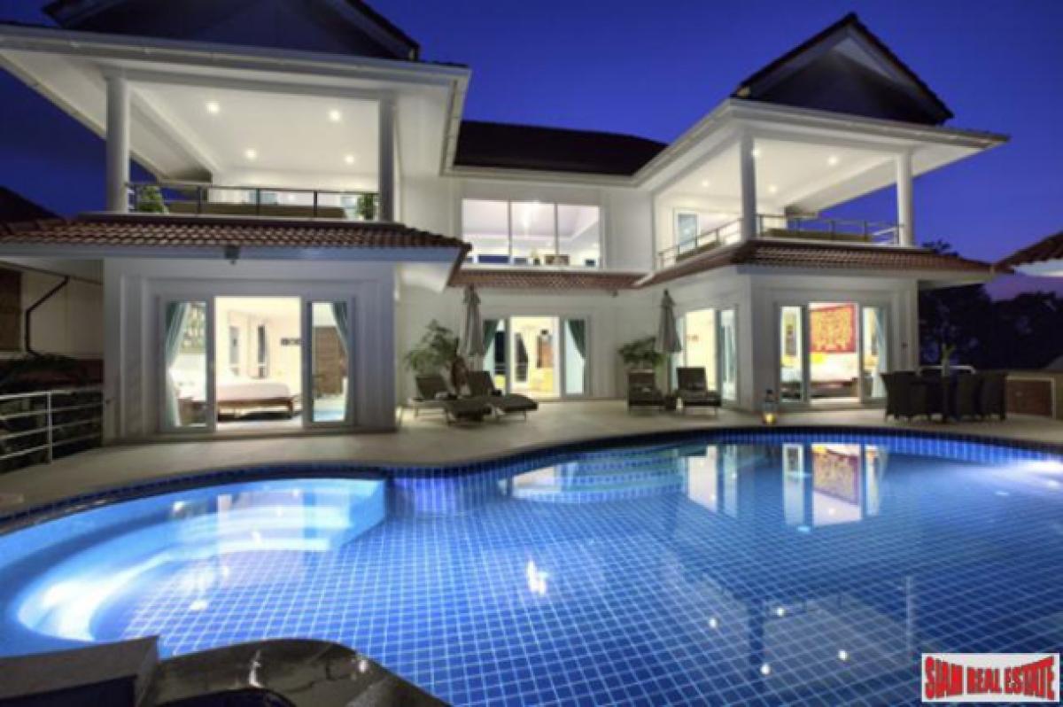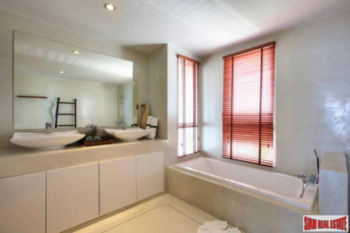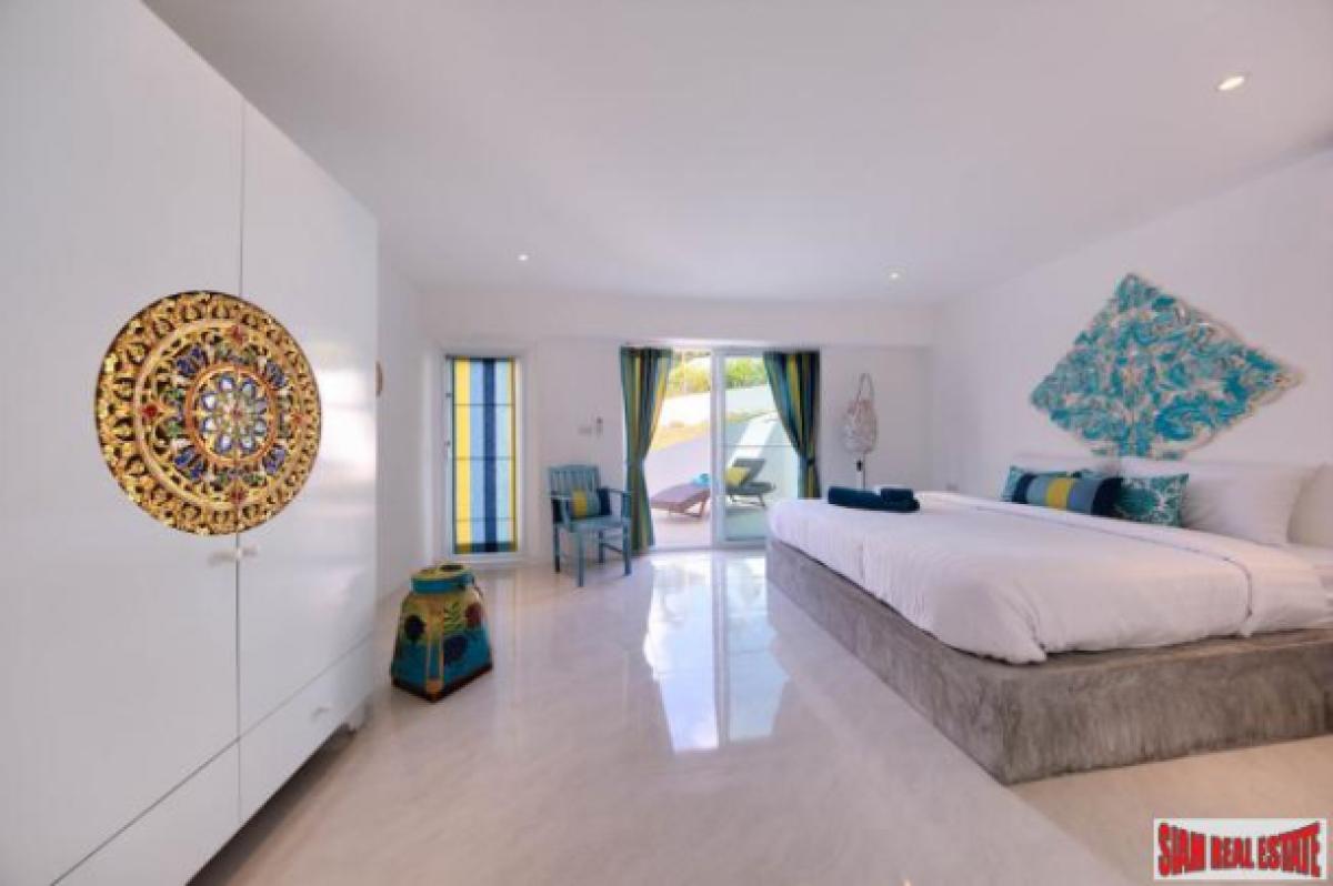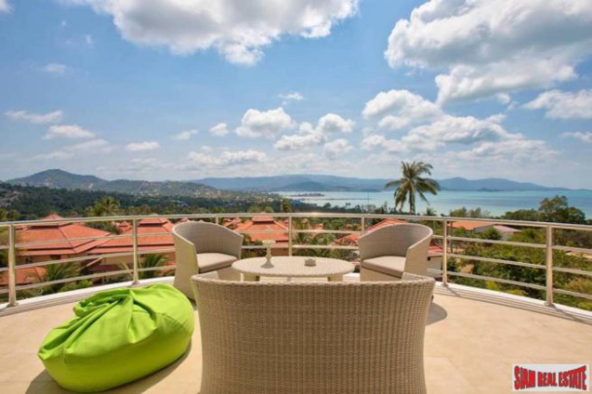 The attention to detail and luxury finishes are unmatched in this 6 bedroom sea view property in Koh Samui Thailand, starting with the grand entrance with private drive flanked by landscaped gardens. Through the main entrance are located two ensuite bedrooms on either side with a lighted staircase in the center of the hallway which leads up to the second floor. For those who prioritize privacy, this level also has a self contained bedroom that can be used as a sixth bedroom or maid/nanny room complete with a garden view and bathroom with shower. The second floor features three ensuite bedrooms, and all have access to the sun terrace and private pool. These bedrooms are an oasis of tranquility with fine amenities and finishes to envelop you in relaxation. The crowning level of this Koh Samui property, the third floor, hosts a vast open concept layout with architectural vaulted ceilings with fans and recessed lighting with balconies either side which capture fabulous sea views of Thailands picturesque Gulf. The fully equipped, western-style kitchen is a pleasure to cook in with all stainless appliances and breakfast bar for casual gathering.The sun terrace is a piece of paradise centered around a striking blue-tiled swimming pool with luxe spa, plus plenty of ways to soak in the bountiful surroundings with a total of four terraces.
