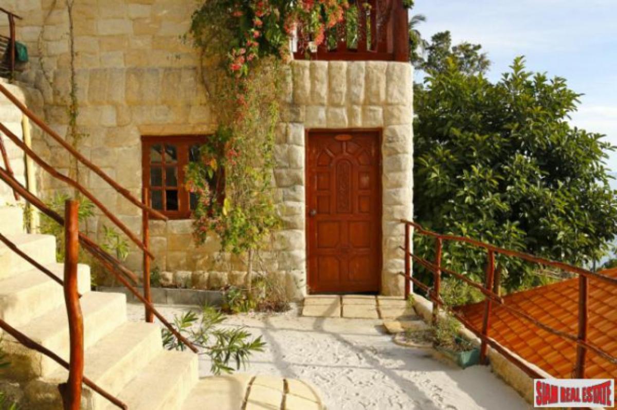 Five Villa residence retreat on secluded beach for sale. This is a very beautiful property with a 4-storey building located 10 meters from a secluded beach. There are 5 villas and sub-villas, infinity view swimming pool, restaurant and sala. All units have sea views and direct access direct to a secluded beach. Distance from buildings to the beach is from 5 meters to 30 meters maximum.This residential property is perfect for hosting yoga retreats, workshops and all related group activities. The residence can accommodate up to 35 people. A two hectares private property, surrounded by tropical gardens and hills and on an secluded tropical island.