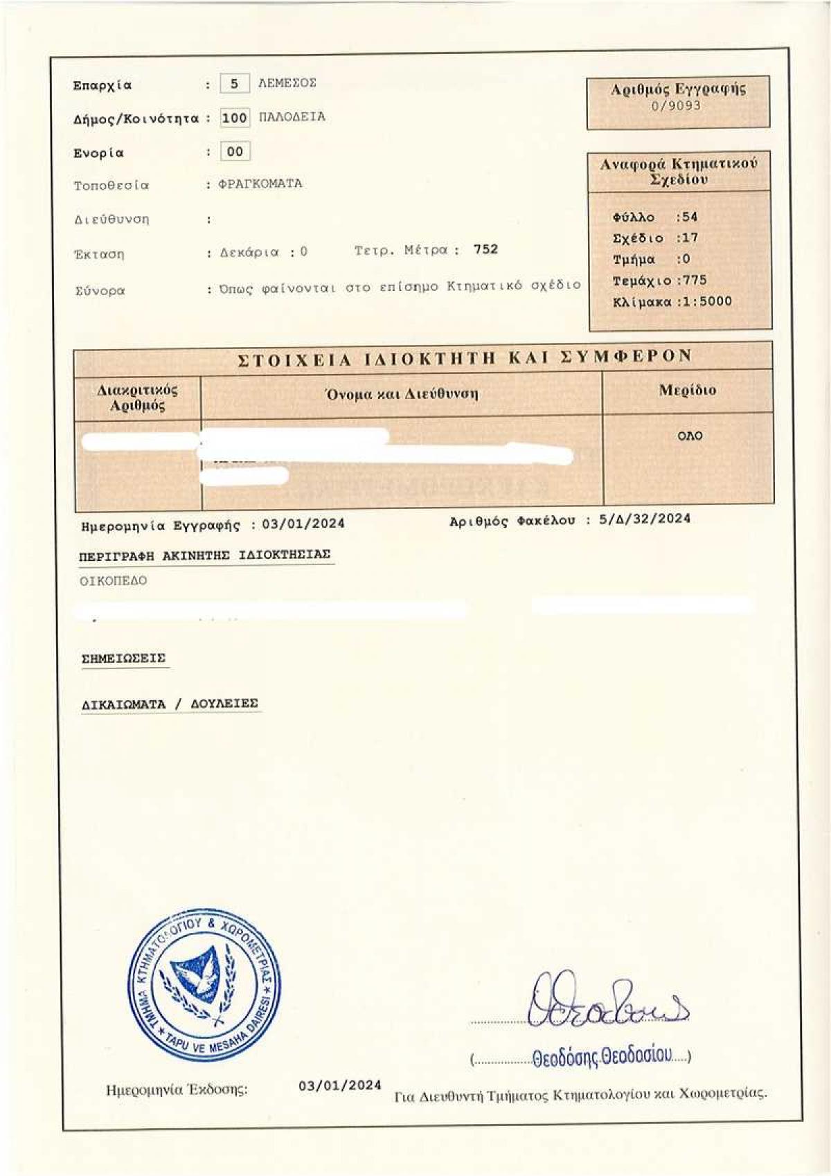Residential plot for sale in Palodia in a quite area.752 sqm / 40% build density / 25% coverage ratio