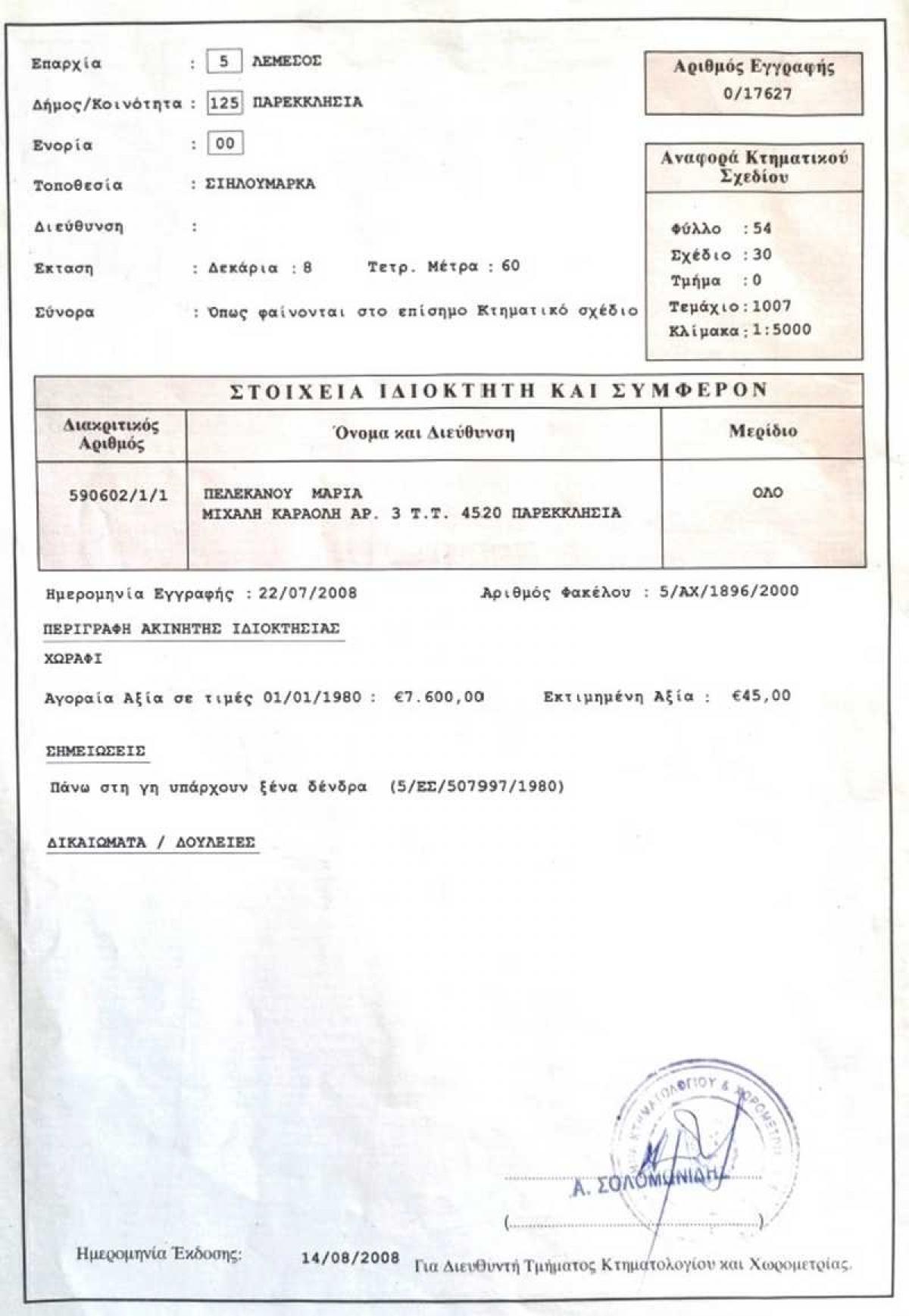 Reference ID: #SA32943Price details: €1,500,000 +VATResidential field for sale in Parekklisia .It is in an ideal area for a residential development or for the division of plots.It has excellent access to the motorway and is just 10 minutes from Limassol Town and less than 5 km from the St. Raphael harbour.· Category: FIELD· Zone: H5· Construction: 30%· Coverage: 20%· Floors: 2· Height: 8.3 mPLUS V.A.TReference number: SA32943