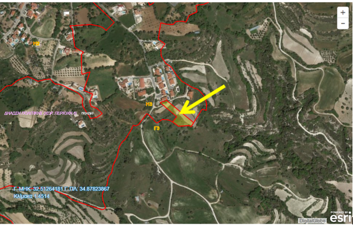 Direct selling from the owner (no real estate or other agents in between):A 2,249 m2 residential plot is available at an excellent location in Polemi village, at a distance of approximately 17 km from the center of the historic and mythical city of Pafos (approximately 15 minutes by car), Cyprus. The entire plot (100%) falls into the residential zone (Vrisi tou Nicola), at a very quiet location, and is suitable for developing. The plot is located near eight large and beautiful villas and a house, surrounded by the nature and walkways in the green. The distance from the plot to the center of the village is only 700 m. In the village, there is ATM (the nearest bank, at Stroumbi village, is approximately 2 Km from the residential area), supermarket, two restaurants, kindergarten, elementary school, junior high school, and high school, and thus it is ideal for families with kids and teenagers as well. The schools are mainstream schools in the area and serve also children from nearby villages. The village is located in between the city of Pafos (15 min by car) and the harbor of Latchi (20 min by car), a popular attraction place for people living in Cyprus (the area of Latchi is popular for its beach, seafood, outdoor activities, and nature and parks). Polemi village is only a 35-min drive from the airport of Pafos and only 10 minutes from the General Hospital of Pafos which has also a 24-hour first-aid service. At a fair distance from Polemi village (10 minutes by car), towards the city of Pafos, there are hypermarkets, fruit and vegetable markets. Polemi is at an altitude of 450 m above sea level. This residential plot is excellent for building a villa or a house for couples or big families.