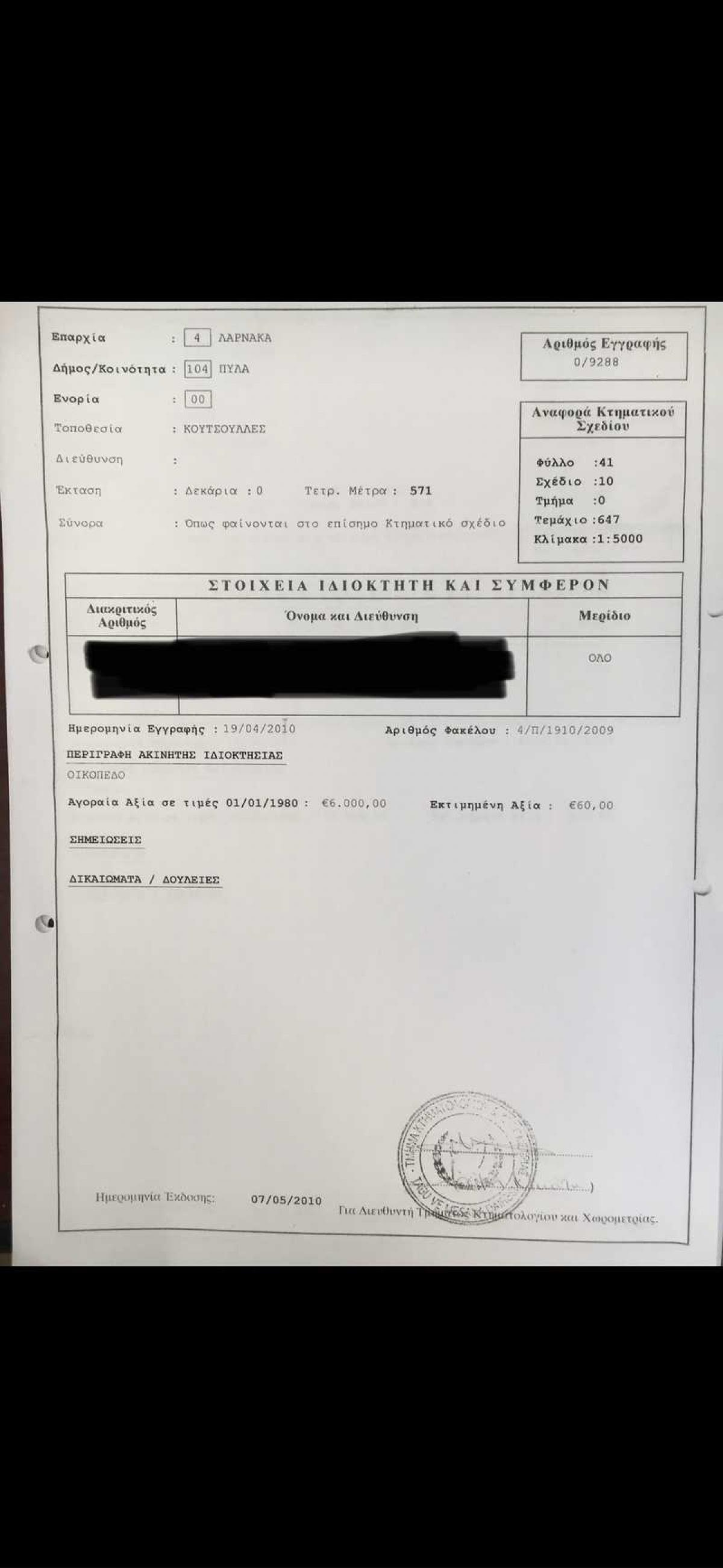 For Sale three (3) plots next to each other at a new building area in Pyla Larnaca. All plots have titles, can build on 90% of the land and are very close to University. This is a great investment opportunity. and have a 1711 sq.m combined together at € 550.000 Euros.Share: No