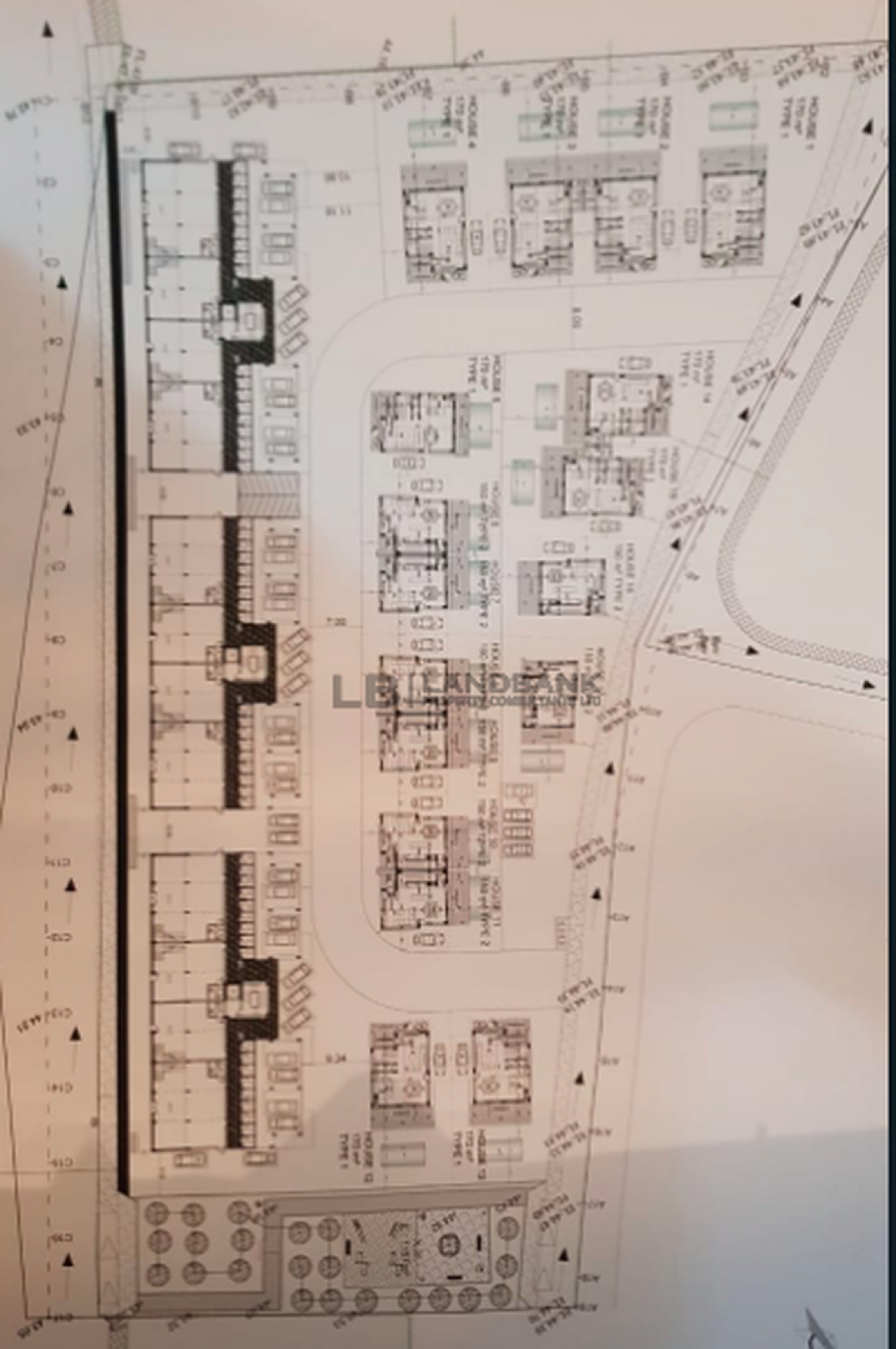 The field has building permit for 17 Villas with pools, 3 Blocks with a total of 42 apartments of 3,2 and 1 bedrooms, 12 shops wiith mezzanines, 118 parking spots in the basement and 54 storage units for the apartments and shops. The project has three roads of access.