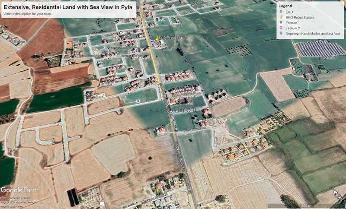 Extensive, Residential land with sea view for Sale in Pyla, Larnaca. Close to many amenities including schools, supermarket, banks, shops, restaurants etc. Just a short drive to Larnaca Town Centre, the beach and Larnaca International Airport.Land of 6689 sq m with 40% building density and 20% land coverage, zone H4. The land has a registered road 40 m away ideal to build luxurious houses with big gardens which can benefit from mountain and sea views. The property is characterized as residential, suitable to build a unique complex of apartments with luxurious amenities and houses up to two floors.