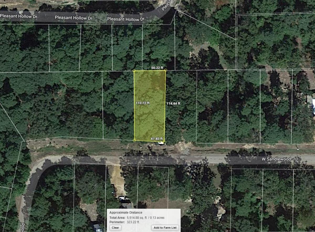 This 0.13 acre lot is located in Avinger (Indian Hills), Texas and the address is Sandlewood Loop, Avinger, TX 75630. Avinger is located 152 miles East of Dallas, Texas and sits just 15 miles or 20 minutes North of The Lake O' The Pines. Lake O' the Pines includes about 18,700 acres of water and 9,000 acres of land located in the piney woods of Northeast Texas. Recreation opportunities are numerous with camping, boating, fishing, hunting, watchable wildlife, and bird watching, including wintering bald eagles. Features: Close to Lake O the Pines Only $200 Down and $200/month for 33 months = $6800 or Discounted Cash Price: $5500 PROPERTY DETAILS APN: 12161 Address: Sandlewood Loop, Avinger, TX 75630 County: Marion State: Texas Size: 0.13 Acre Dimensions: 48' x 111' x 50' x 115' Legal: INDIAN HILLS SEC D LOT 35 Terrain: Flat Access: Dirt Road Power: Power in the area Water: Water in the area Sewer: Would be by Septic Taxes per Year: $26 HOA Fees per Year: $87 GPS Coordinates (center) at the road: 32.822105, -94.629001 --- Northwest Corner: 32.822240, -94.629082 --- Northeast Corner: 32.822239, -94.628921 --- Southwest Corner: 32.821967, -94.629079 --- Southeast Corner: 32.821964, -94.628917 Elevation: 293 BUILDING INFORMATION Zoning: TX-Marion-Avinger-Indian-Hills-Harbor-Sec-A-B-C-D Time Limit to Build: No time limit to build Site Built Homes Allowed: Allowed 600 min sqft Modular Homes Allowed: Allowed Manufactured Homes Allowed: Allowed Mobile Homes Allowed: Allowed Tiny Homes Friendly: Not Allowed ALLOWABLE USES Full-Time RV Living Allowed: Not Allowed RV on the Property While I build: Allowed Camping in a RV Allowed: Allowed 14days max a month