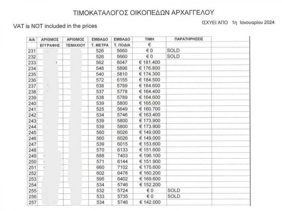 Ολα τα οικοπεδα διαθετουν τιτλους ιδιοκτησιας για αμεση μεταβιβαση.