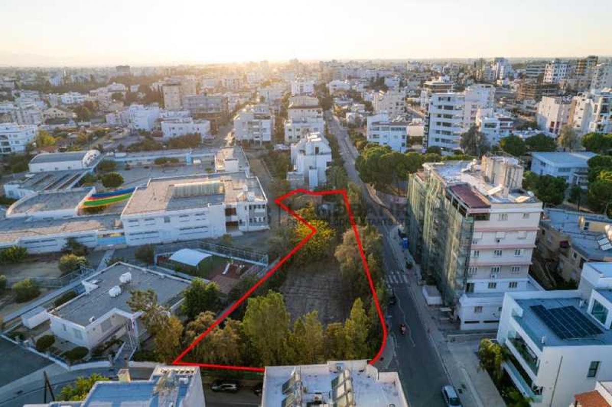 The property concerns a residential plot in Agios Dimitrios, Strovolos. It is located at the junction of Thermopylon and Protagorou Street, 150m from Armenias Avenue, close to the Elementary School of Agios Dimitrios.It has a land area of 1,413sqm and holds a privileged position, with a road frontage of 108m.