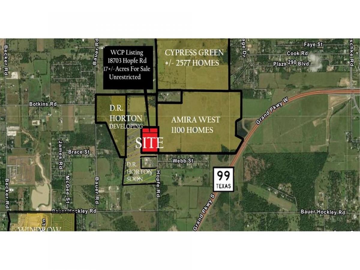 Discover an exceptional opportunity to own 4.3 acres of partially wooded land, positioned for future growth amp; development. This expansive parcel offers a serene and natural setting with endless possibilities. Located along Hopfe Road, this property boasts fully paved county road and is just a short distance from HWY 99 and 290 ensuring easy connectivity to nearby amenities and major routes. The land faces the prestigious 1,000-home Everly project by Johnson Development. To the south and west, it neighbors the proposed DR Horton homes, placing it in the heart of a thriving and rapidly growing community. The property itself is a mix of open space and partial tree cover, providing a balance of natural beauty and usable land. Whether you envision a small development, or retail , this 4.3-acre parcel offers the space and flexibility to bring your vision to life. With its prime location, easy access to major roads, and proximity to high-value developments, this property is a rare find.