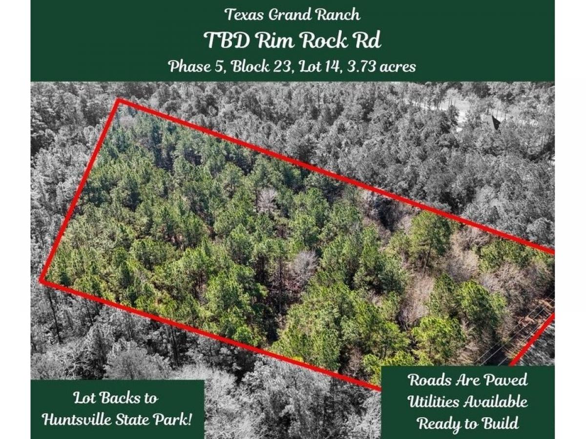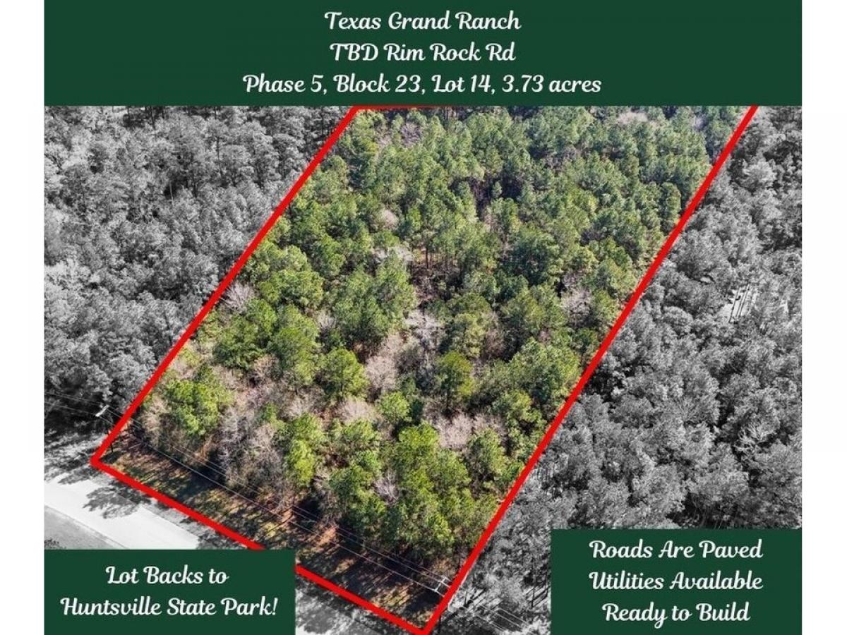 Experience the best of nature and privacy with this stunning 3.73-acre wooded lot in the highly sought-after Texas Grand Ranch community. Nestled on Rim Rock Road and backing up to Huntsville State Park, this property offers direct access to scenic trails and abundant wildlife, creating the perfect setting for your dream home. Enjoy the tranquility of towering trees and paved roads while remaining just minutes from shopping, dining, and markets, with easy access to I-45 for a smooth commute. Zoned to Huntsville ISD, this high-and-dry lot provides multiple potential homesites and the convenience of available fiber high-speed internet. Texas Grand Ranch offers top-tier amenities, including a covered pavilion, parks, ponds, playgrounds, and BBQ areas for endless outdoor enjoyment. Donrsquo;t miss this rare opportunity to own a prime homesite in a community that blends seclusion with modern convenience.