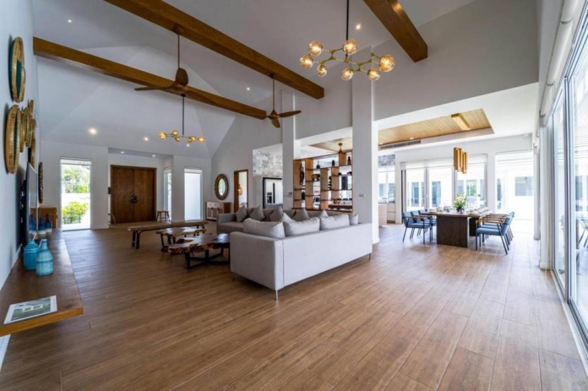 Woodland Villa Hua Hin is a beautifully designed detached house that offers a blend of modern style and spacious living, perfect for those seeking a luxurious and comfortable home. Set on a large plot of 1,600 sqm (400 sq. wah) with an interior space of 440 sqm, the villa is ideal for families or those who love to entertain.One of the standout features of Woodland Villa Hua Hin is its outdoor space, which includes a private pool complete with a pool bar, perfect for cooling off or hosting poolside gatherings. The villa also has a large terrace where you can enjoy the outdoors, and an external jacuzzi adds an extra touch of luxury.