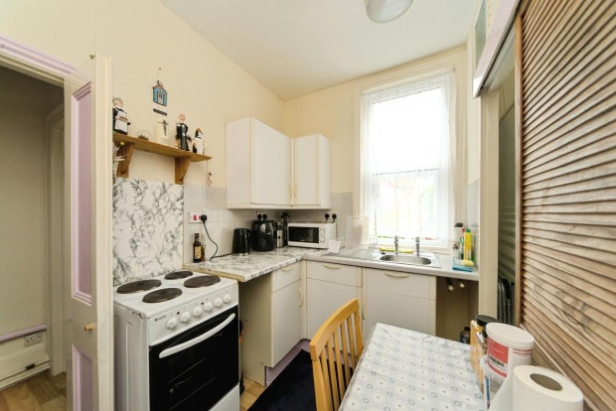 A compact ground-floor apartment offering a bright main living space, fitted kitchen, separate WC and shower room. Well located close to Eastbourne town centre, seafront and mainline station, this home is ideal as a first purchase, investment or coastal pied-à-terre.This compact ground-floor apartment offers a bright and practical living space, ideal for a first-time buyer or someone seeking a convenient base in Eastbourne. The layout includes a spacious main room with plenty of natural light from the large front-facing windows, currently arranged as a lounge and sleeping area. The kitchen is neatly fitted with modern white units, tiled splashbacks and marble-effect worktops, providing good storage and space for appliances, with a window overlooking the rear. There is also a separate WC and a shower room, making good use of the available space.