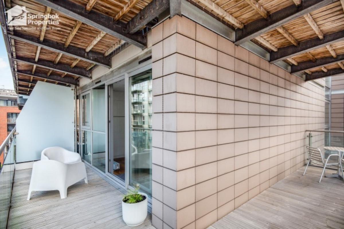Inside, the apartment offers a spacious open-plan living and dining area, with a fully integrated kitchen. The sleeping area, cleverly designed to maximize space, features built-in storage for convenience. The stylish bathroom includes a well-appointed three-piece suite and a modern shower. One of the apartment's highlights is its L-shaped balcony, which overlooks the River Irwell and the well-maintained courtyard of The Edge, creating a peaceful outdoor retreat.