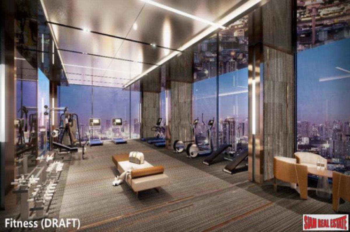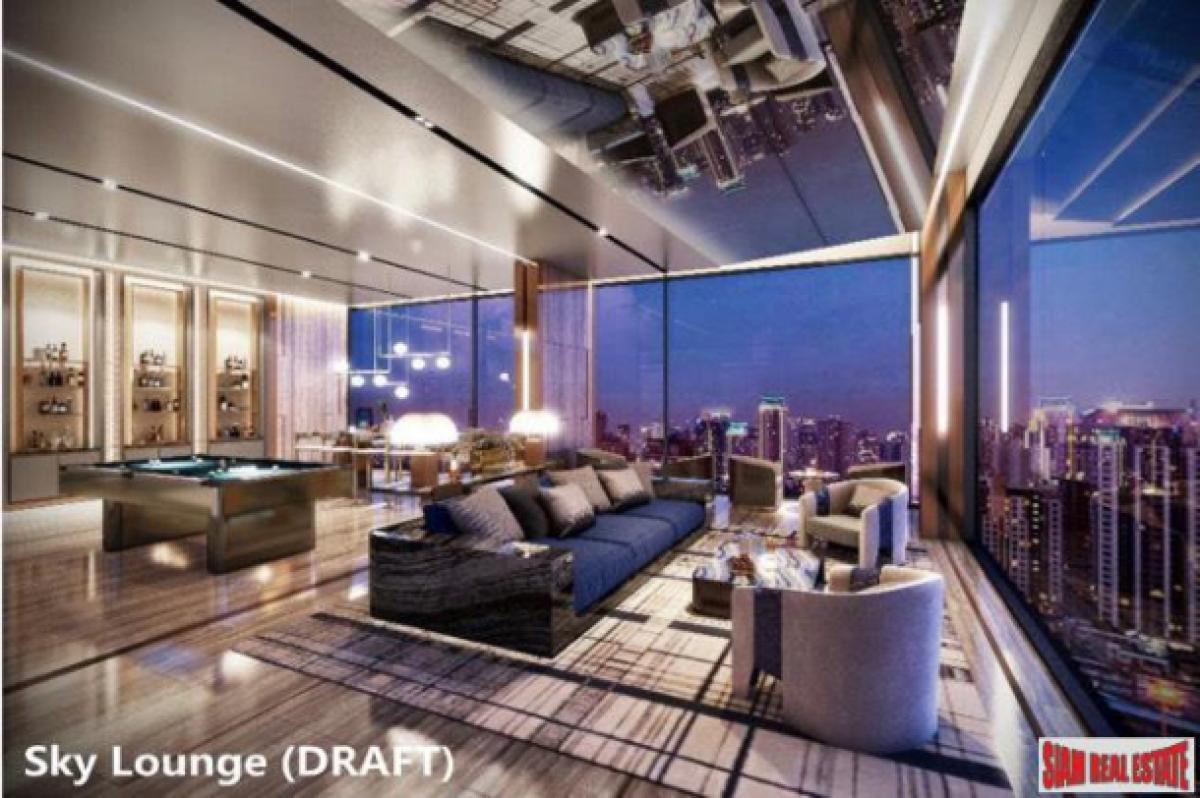 Special features include a rooftop panoramic sky garden, 55th floor rooftop swimming pool and a 54th floor boxing room, yoga room, sauna, golf simulator room and 270 degree sky lounge. Extra amenities offered are free shuttle buss, smart door lock, butler service and house cleaning.