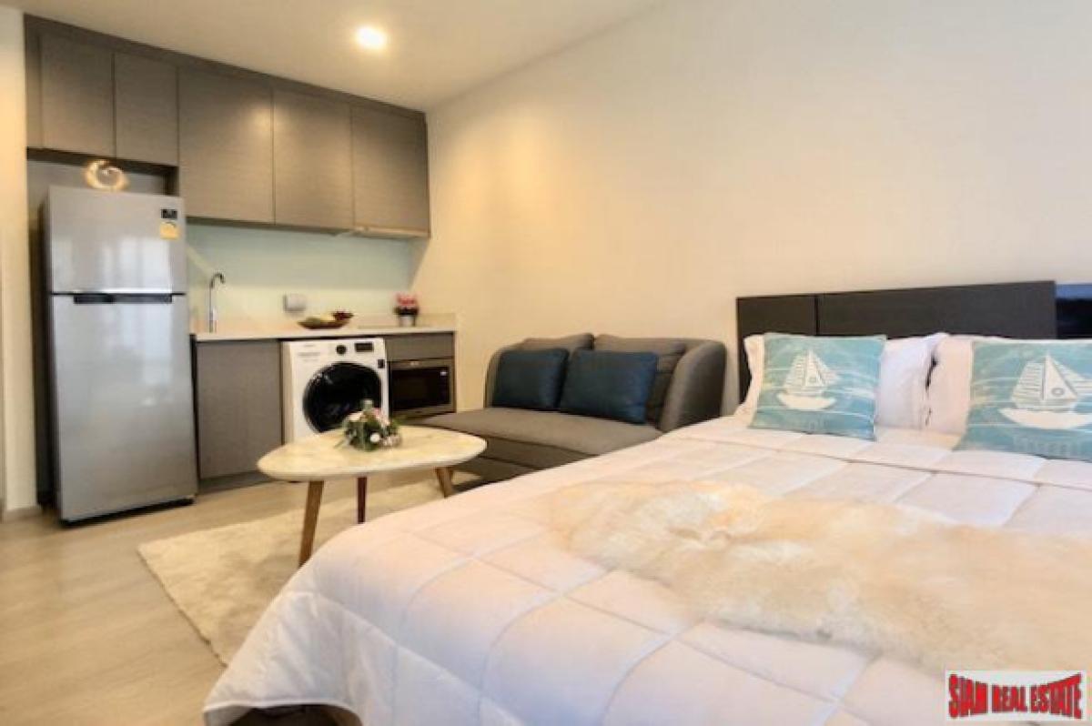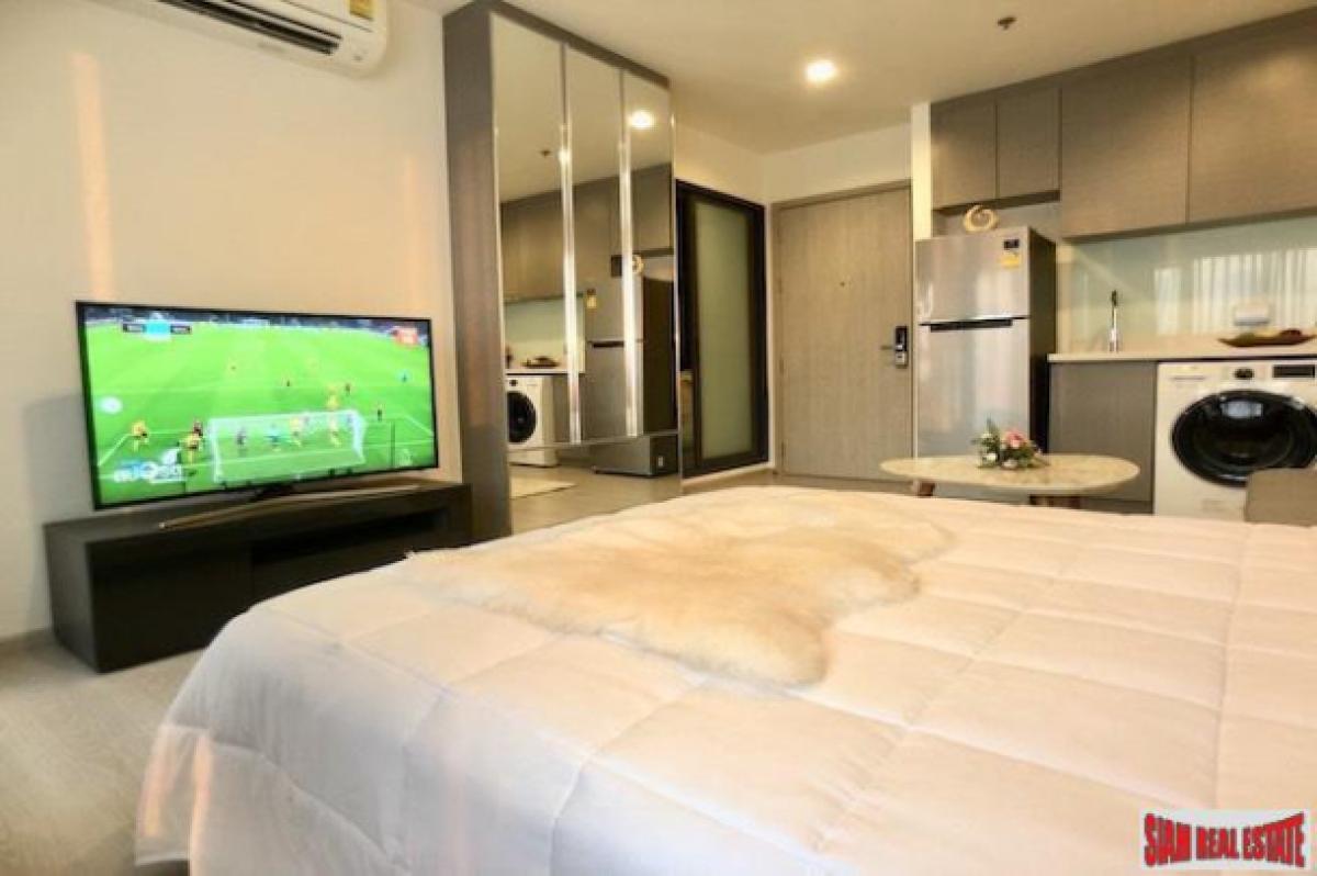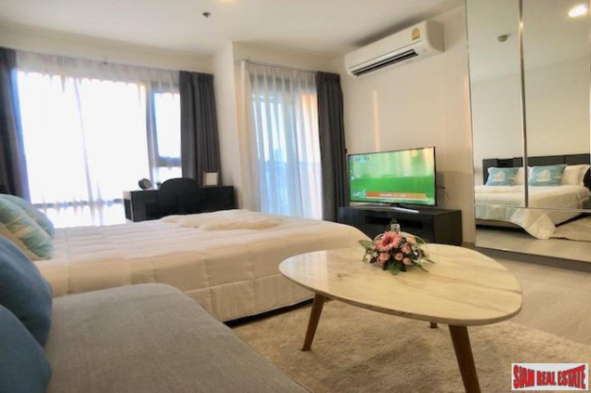 This is a high quality studio condo for sale situated on the 17th floor with clear city views. The unit is very bright with two floor to ceiling windows and mirrored walls. There is a nice balcony right off the bedroom.In the apartment there is a big bed, large flat screen TV, sofa, coffee table and western kitchen. The kitchen is equipped with a stovetop, microwave, refrigerator and a washing machine.
