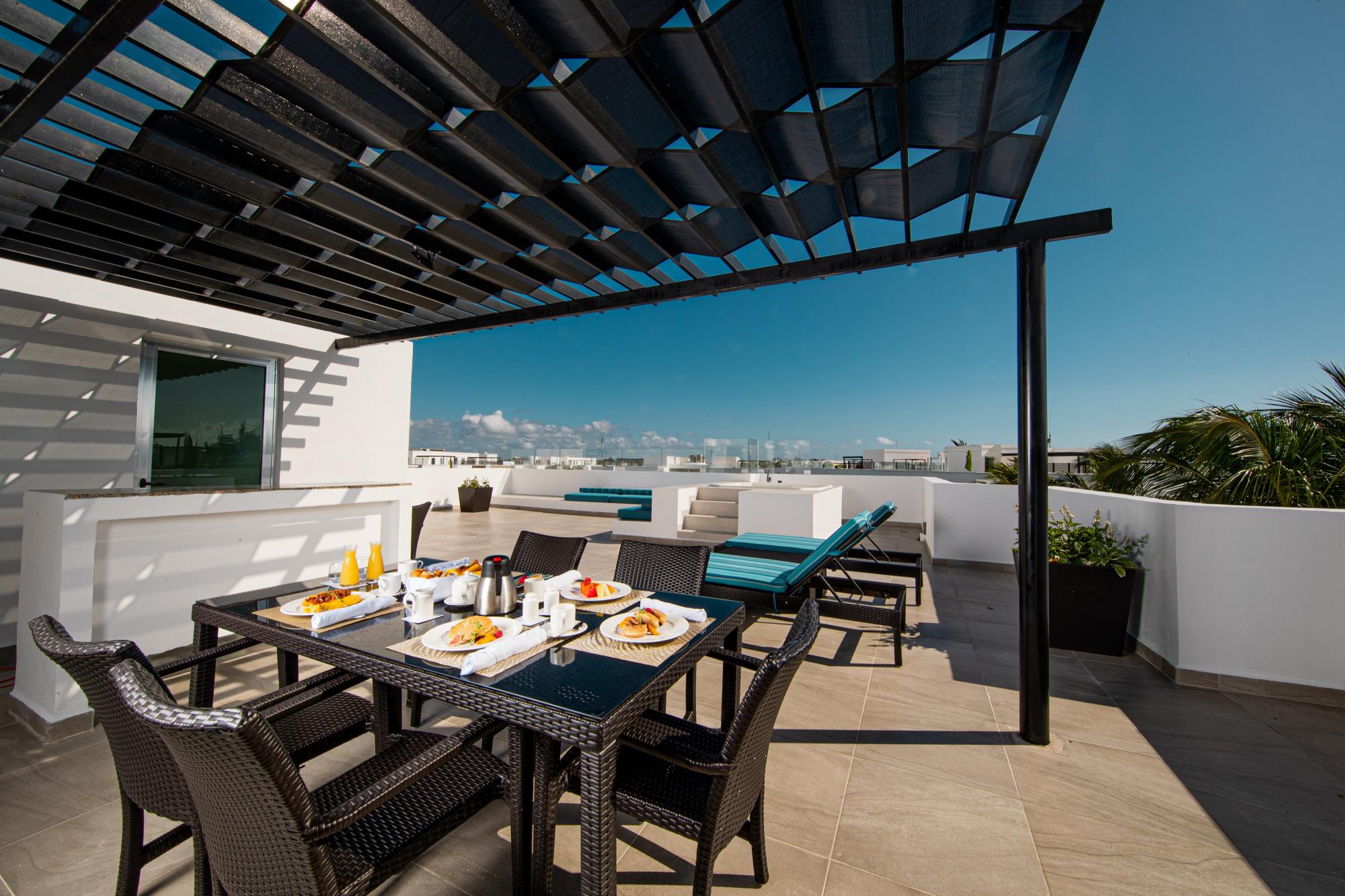 Experience the height of luxury with our exclusive Penthouse. Has been designed for families or friends gathering, it caters perfectly to special events. This residence is decorated with art lamps, sculptures and large paintings on the walls. The main bedroom has a king size bed with large wooden sliding doors that open up to a separate living room adorned modernly and equipped with a double pull out sofa bed. As well as a tastefully designed second bedroom. The second and third bedroom is furnished with two double beds or a king size bed. Rooms can be connecting or joined by an entry hall based on availability.This suite also provides a full kitchen with granite countertops (refrigerator microwave, oven and stove), and a dining table.
