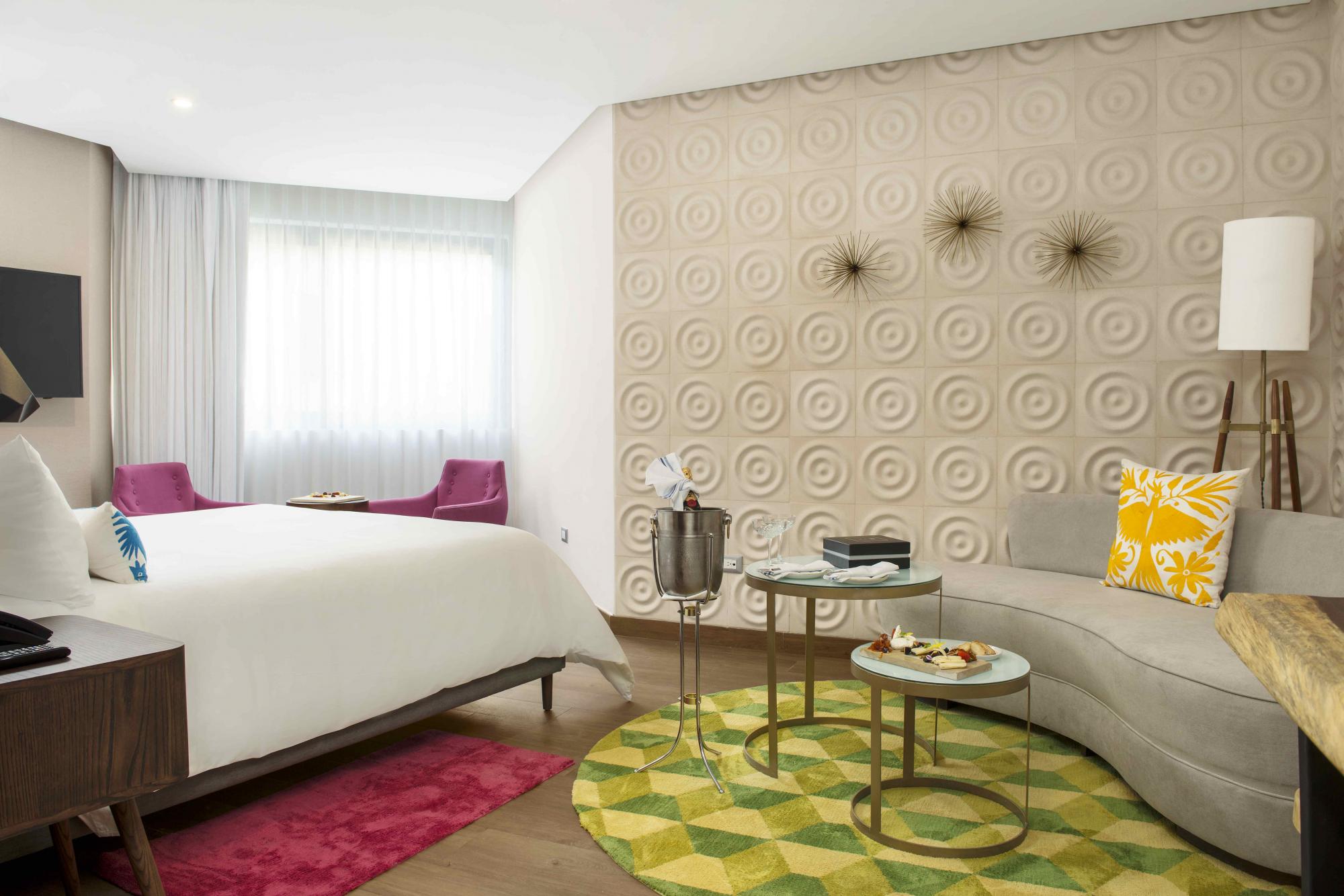 Inspired by the Mexican Caribbean with the touches of color that represent us, wood details and a modern metallic partition that defines the living area and the bedroom, providing greater comfort. Available with a King bed and sofa bed.