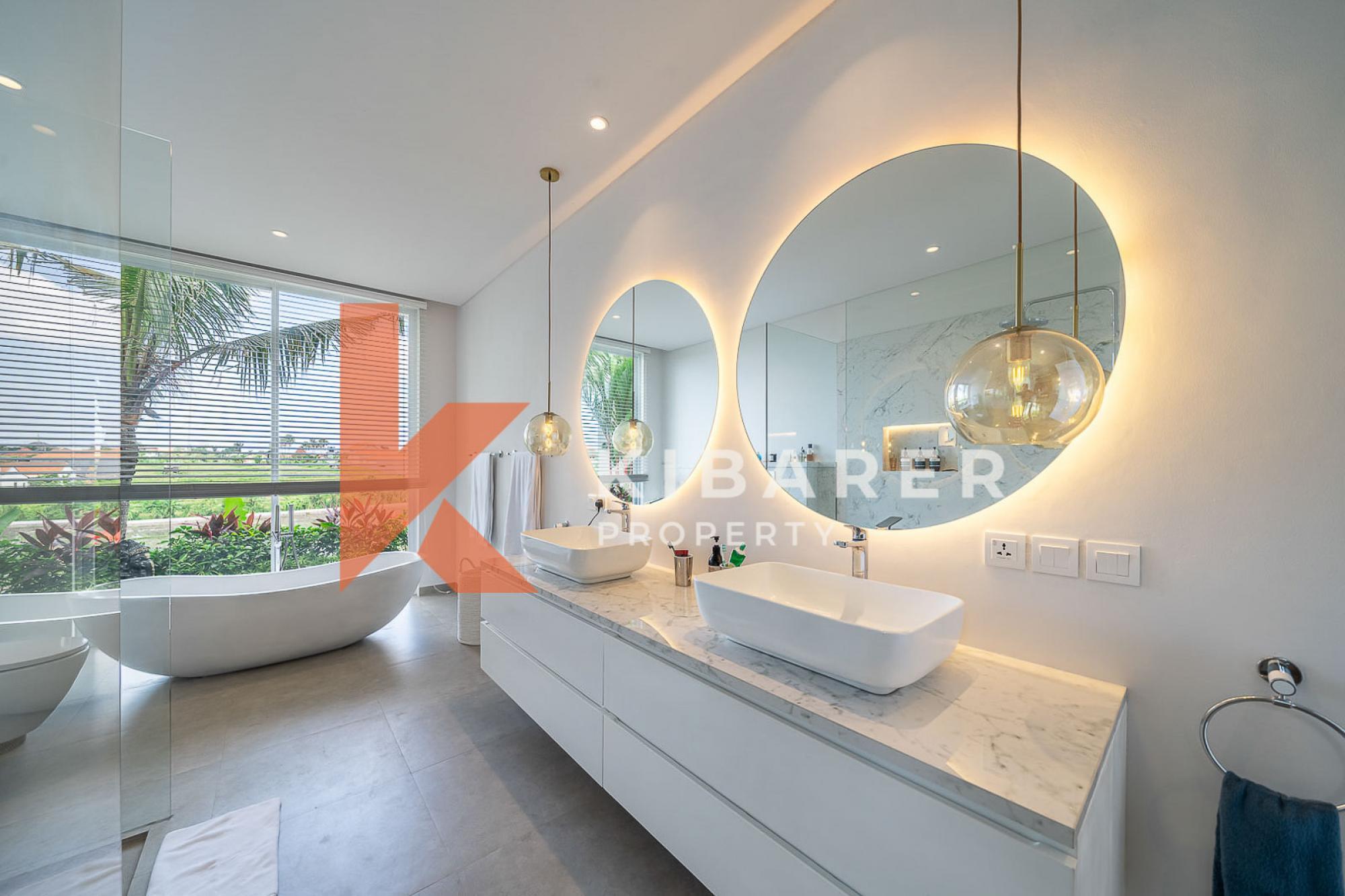 The living areas are designed to capture the stunning ricefield views, bringing a sense of tranquility and natural beauty into your home. The villa’s layout ensures a seamless flow between indoor and outdoor spaces, with direct access to the lush garden and pool area.