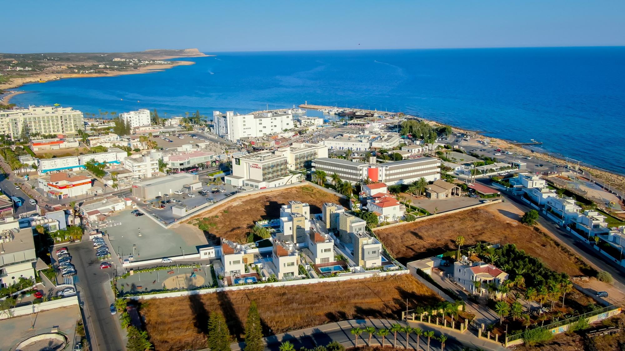 Nestled in Ayia Napa's vibrant heart, this villa, within an exclusive gated complex, offers an unparalleled blend of luxury and locale. Just steps from the iconic monastery square and the glistening sea, this sumptuous residence of visionary design awaits. Impeccably crafted, it seamlessly marries opulent interiors with the island's temperate climate, evoking timeless elegance. A Blue Flag sandy beach, daily essentials, and entertainment hotspots lie within a leisurely stroll, enhancing convenience.The ground floor showcases expansive living areas and a culinary haven, while the first floor hosts a sanctuary of slumber. A lower level, a haven of relaxation, boasts a fourth bedroom and recreational spaces. Yet, the pinnacle awaits above—an exclusive private roof garden, adorned with a jacuzzi, where starlit evenings offer unrivaled vistas. Alternatively, a poolside oasis and barbecue area in your private garden provide a perfect setting for gatherings.