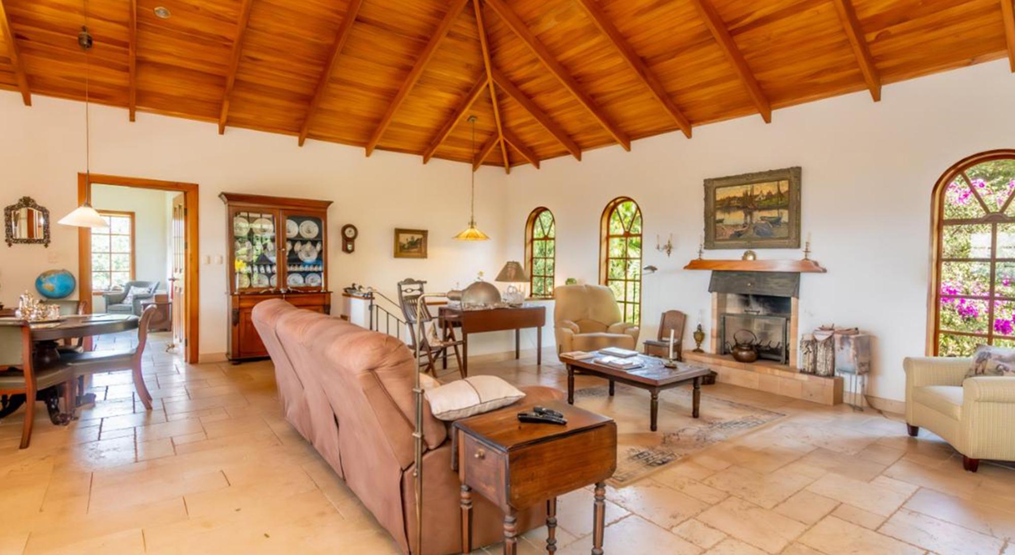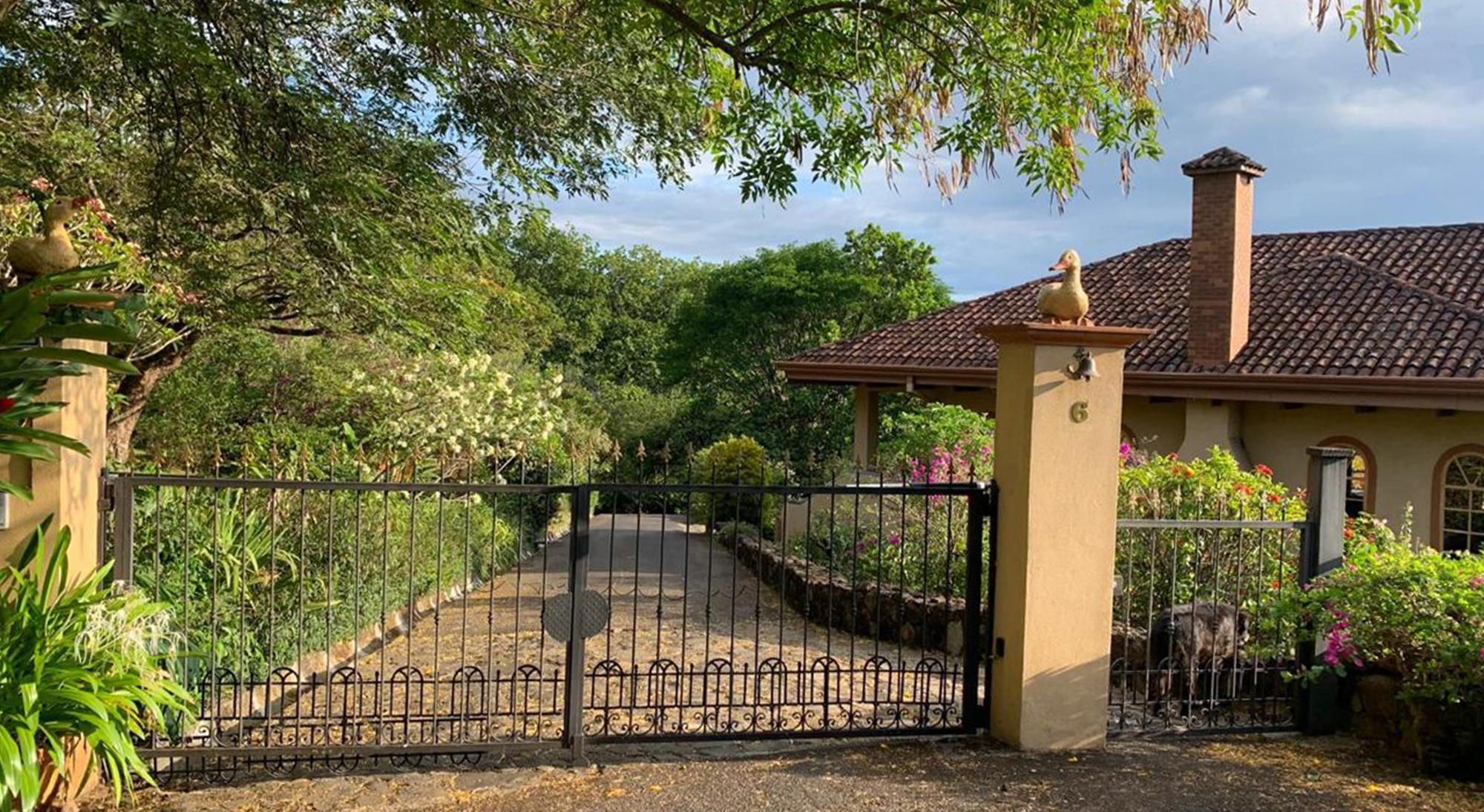 This exceptional Mediterranean-European style residence offers a harmonious blend of architectural elegance, comfort, and potential. Nestled in the prestigious gated community of Villas del Arroyo in La Guácima, Alajuela.Thoughtfully designed for both versatility and privacy, the home sits on an expansive 11,400-square-meter (2.8-acre) lot of mostly flat terrain, surrounded by mature gardens, large trees, and a charming natural stream that borders the property.