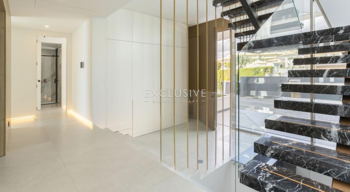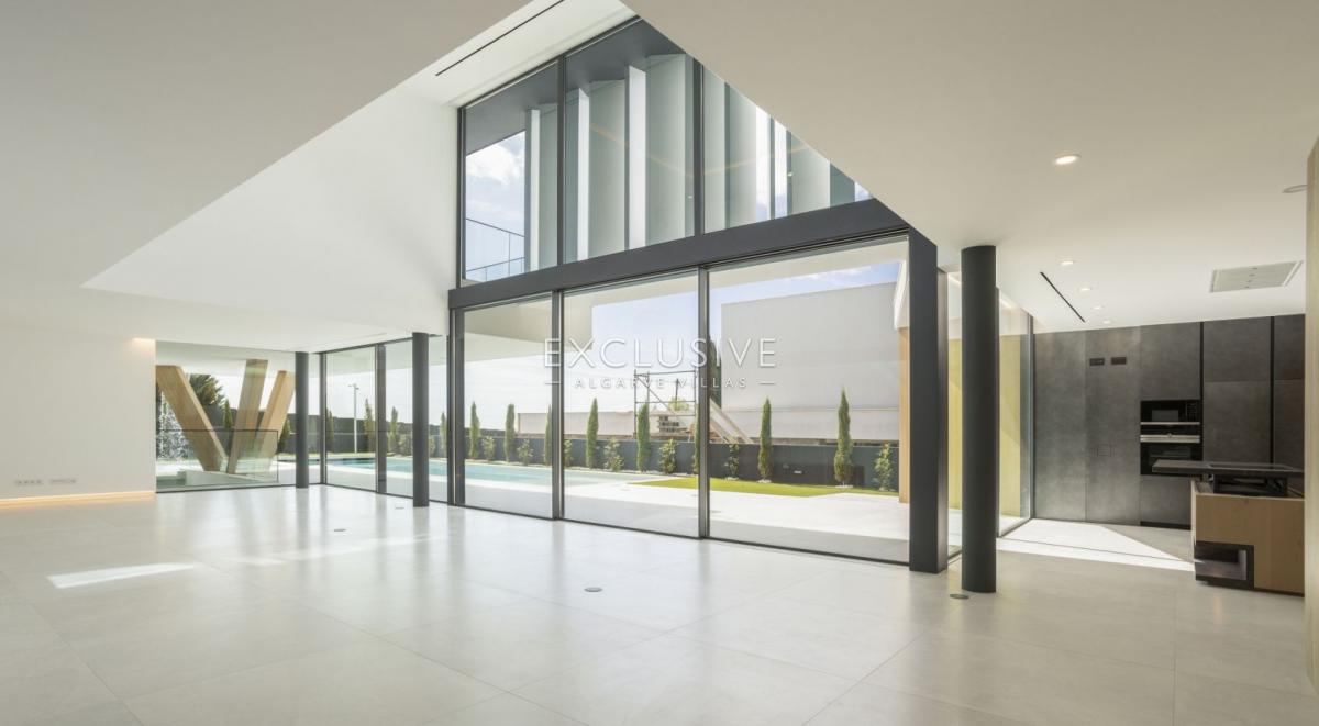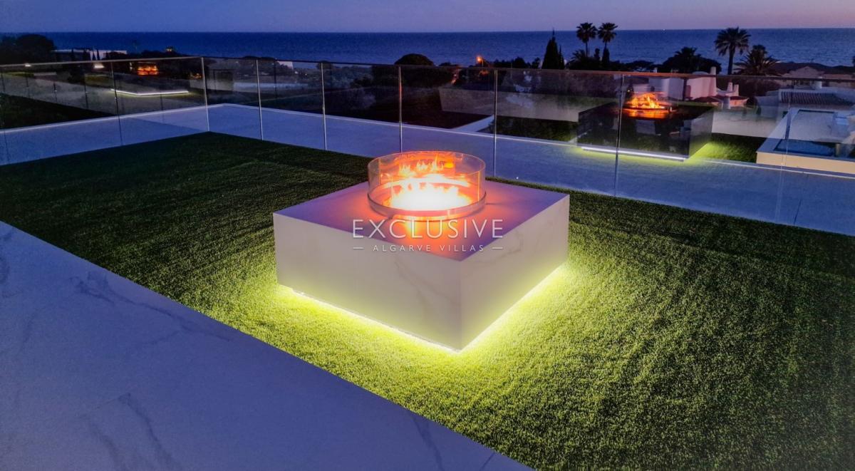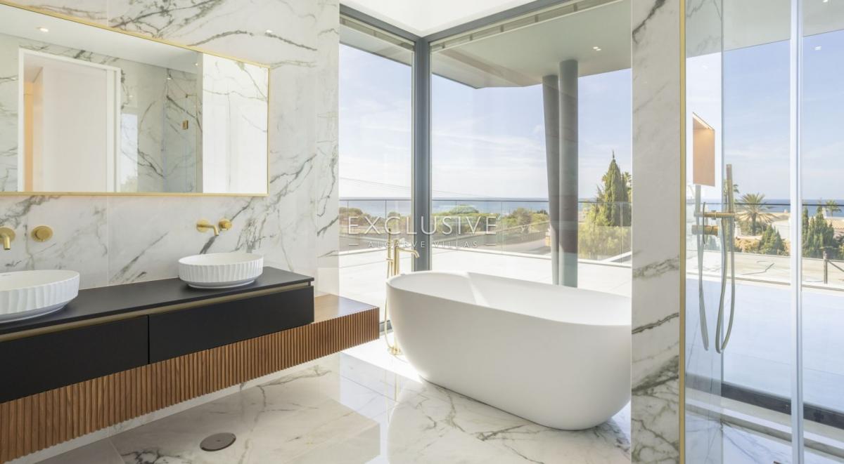 Fabulous 5 bedroom modern villa with fantastic sea views, and built to a very high standard, using quality materials. The villa is situated at a short 300 meter walking distance to the beach and near all amenities. The property is equipped with unique finishes and features, it comprises 5 ensuite bedrooms. On the ground floor you will find 2 of the ensuite bedrooms, a guest WC, large open plan kitchen leading you into the massive double height ceiling living/dining room. There is an space for an outside kitchen/BBQ area adjacent to the kitchen and there is a large pool with sunken in seating area and fire pit. The waterfall comes down from the first floor and goes into the basement area. The pool has a glass window giving extra light into the basement area. On the first floor there are 3 further ensuite bedrooms with access to the outside terrace. The is a large master bedroom with ample closets and large bathroom. The master has direct acess to a large terrace and outside jacuzzi with views to the coast. The rooftop offers a stunning panoramic coastal and ocean views, there is a large seating area and firepit. There is access via a staircase and elevator. The property has 2 elevators, in inside the property servicing all 4 levels (basement,ground,first floor and roof terrace). And then there is a ‘service' elevator going to the basement and first floor. The basement can be used to the new owners liking, there is ample car space, a separate space for a cinema/games room and large space for a private gym/spa area. This multi functional space can still be adjusted within limits, to the new owners design. The villa enjoys all latest technology from home control system, AC, waterbased underfloor heating, CCTV, extra thermal insulation, solar panels, electric pool cover and much moreFeatures: