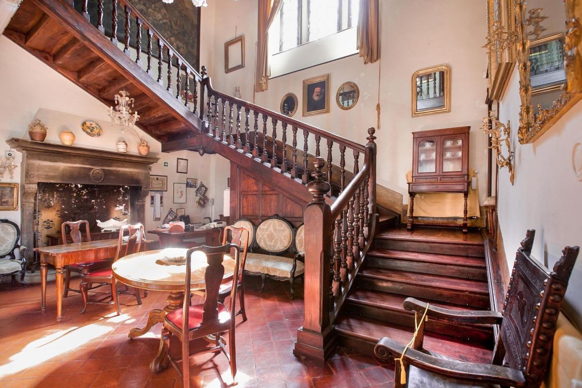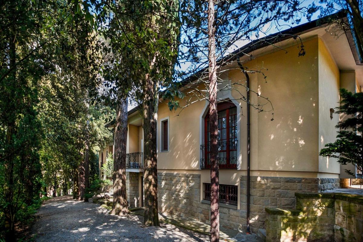 A charming period manor house on four levels is for sale with two villas, land and a tennis court next to the old town of Anghiari, Arezzo. The typically Tuscan, stone clad manor house, rich in history was originally built by an English lord at the beginning of 1900. It was renovated in the 1980s to combine modern comforts with an ancient British style and unique Italian architectural features characterized by bay windows, antique stone fireplaces, wooden beam and coffered ceilings, and traditional terracotta flooring throughout. All rooms enjoy natural light thanks to floor to ceiling glass walls and majestic brick archways. Two additional independent two-storey villas offer self-contained apartments and warehouse storage space. The grounds include a garden embellished with centuries-old oaks and cypresses, a large tennis court shielded by a perimeter hedge ensuring privacy and peace, and agricultural land with olive trees and vines. Situated downtown, this historical house is ideal as a private home and perfect has a hospitality residency to host travelers from all over the world. PROPERTY Ref: ARZ2299 Location: Anghiari, Province: Arezzo, Region: Tuscany. Type: 490 sq m / 5275 sq ft manor villa, two villas of 123 sq m / 1324 sq ft and 90 sq m / 969 sq ft, plus warehouses, land and tennis court Year of construction: 1900 Year of restoration: 1980s Condition: good Land: 1.3 hectares (3,21 acres), partly used as park and partly as agricultural land for olive groves and vines Utilities: Fixed telephone network: available Wi-Fi: available, broadband Heating: methane Water: Mains city network and private well Electricity: active Sewers: septic tank and mains city network Alarm system Video surveillance system Air conditioning The property is owned by a private individual The location, for privacy, is approximate Please note all measurements cited are approximate Energy Efficiency Rating: G e E Distance from services: downtown Distance from main airports: Perugia 74km, Firenze 126km, Pisa 186km Layout: Manor house, 490 sq m / 5275 sq ft Underground Floor: 2 cellars, woodshed, deposit Mezzanine: entrance, hallway, living room, dining room, kitchen, study, bathroom First floor: 3 double bedrooms, hallway, closet, bathroom Attic floor: 5 attic rooms Villa 1, apartment 123 sq m / 1324 sq ft and warehouse 120 sq m / 1292 sq ft Underground Floor: deposit area Second floor: kitchen, 5 bedrooms, 1 bathroom Villa 2, apartment 90 sq m / 969 sq ft and warehouse 90 sq m / 969 sq ft Ground floor: 2 cellars, central heating room, closet First floor: kitchen, dining room, living room, 2 bedrooms, bathrooms- terrace