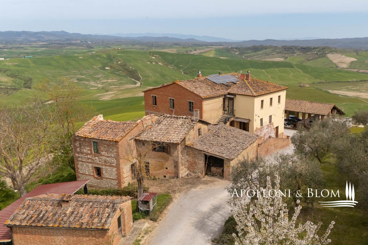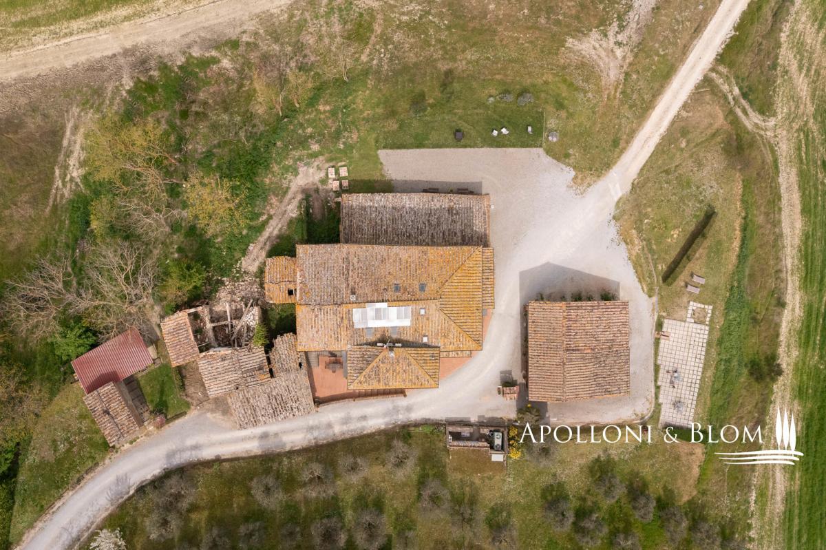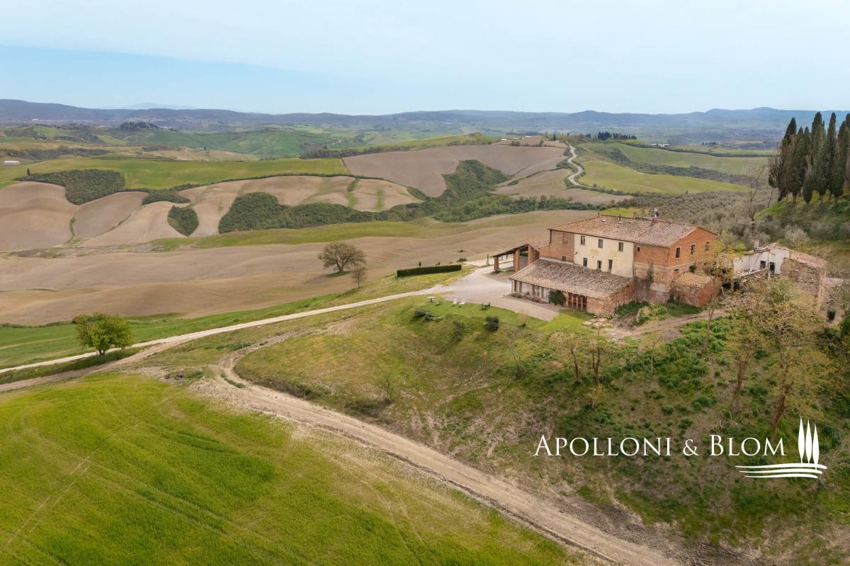 65-hectare charming country estate for sale restored with agriturismo, solar energy, stunning views over the Crete Senesi and Siena’s skyline. Set just south of Siena, dominating the soft waves of clay hills stretching to the horizon, this distinctive estate offers a rare combination of scenic beauty, historical charm, and forward-thinking sustainability. Whether you’re seeking a private retreat, a hospitality venture, or a sustainable lifestyle project in one of Tuscany’s most captivating landscapes, this is an opportunity not to be missed. Positioned at the top of a gentle slope, the property enjoys breathtaking 360-degree views, extending as far as the city of Siena. At night, the countryside transforms into a glowing patchwork of farmhouses and hilltop villages, creating a truly magical setting. The estate includes a carefully restored stone house arranged over three levels and divided into six self-contained—four dedicated to agriturismo and two for private residential use—for a total of 530 square meters and offering a total of 10 bedrooms and 9 bathrooms. Traditional finishes such as terracotta, stone, and wood have been used throughout, preserving the authentic Tuscan atmosphere. A portion of the main house and a barn of 139 square meters are rich in potential for future development—whether as more guest accommodations, artist studios, or additional living spaces. The outdoors star a classic bread oven, barbecue, perfect for relaxing or entertaining. The estate also includes 65 hectares of agricultural land, primarily arable, with enormous potential for farming and olive cultivation. One of the estate’s great advantages lies in its sustainable infrastructure with a solar panel system with photovoltaic installation. The water supply is exceptionally well-structured, with access to the mains city supply, a rainwater collection tank, a deep well, and even a small pond, ensuring both self-sufficiency and environmental responsibility. Located just 9 kilometers from services and within easy reach of Siena, Florence, and the Val d'Orcia, this property offers more than a residence or investment—it’s a long-term vision. PROPERTY Ref: ASC3204 Location: Asciano, Province: Siena, Region: Tuscany Type: 65-hectare/160-acre country estate featuring a 530 sq m/5,704 sq ft three-story stone former farmhouse restored into 6 units, paired with a barn Annex/es: 139,7 sq m/1,503 sq ft (11x12,70 mt) barn and a ruin building Year of construction: 1900 Year of restoration: 2004. The residential and agriturismo areas are in excellent condition; one housing unit requires complete restoration Land/Garden: courtyard of 700 sq m/7,534 sq ft with a bread oven, barbecue, and outdoor shower. The land covers 65 hectares/160 acres, mostly arable Parking: outdoor spaces and in the barn Utilities: Fixed telephone network: available Internet: wi-fi available Heating: LPG + pellet stove, fireplaces, photovoltaic system with solar panels on the roof of the main farmhouse Water: mains city supply Electricity: available Water waste: Imhoff tank The property is owned by a private individual. Distance from services: 9 km/5.5 miles Distance from main airports: Firenze 97 km/60 miles, Perugia 99 km/61 miles, Roma 256 km/159 miles Gravel road: 100 m/0.06 miles Layout: Ground Floor: reception area and small shared lounge; Apartment 1: living room with dining area and kitchen; 2 double bedrooms with large windows and direct garden access; 2 bathrooms, storage room; Apartment 2: living room, dining area, kitchen; 1 double bedroom, 1 twin bedroom, 1 bathroom First Floor: Apartment 3: kitchen, 1 double bedroom, 1 bathroom; Apartment 4: living room with dining area, kitchen; 1 double bedroom, 1 bathroom; Apartment 5: living room with fireplace and dining area; kitchen, mezzanine, 2 double bedrooms, 1 bathroom with bathtub, 1 bathroom; Apartment 6: living room with fireplace, dining area; kitchenette, 2 bedrooms, 2 bathrooms- parking