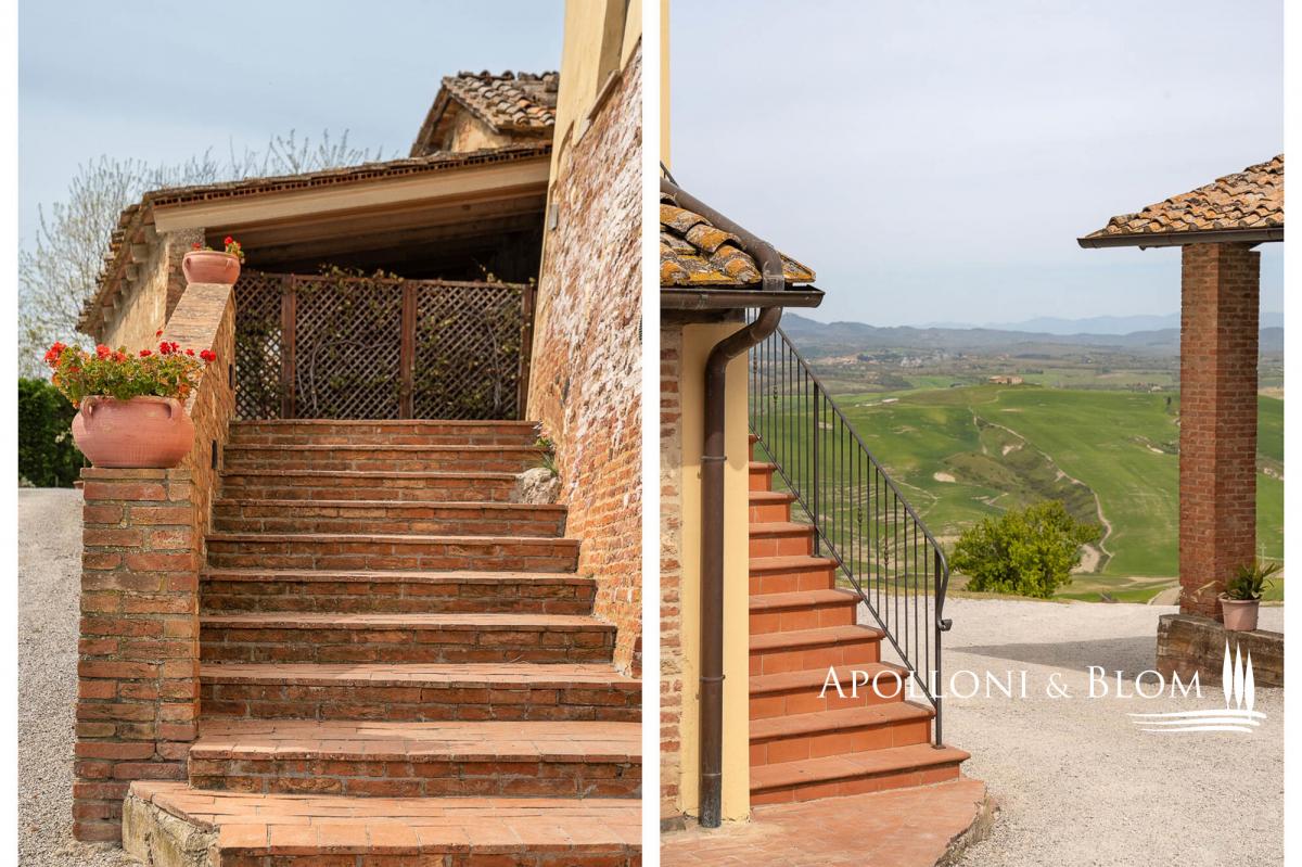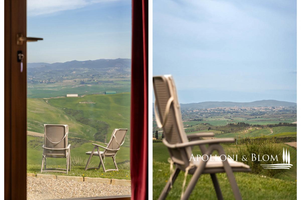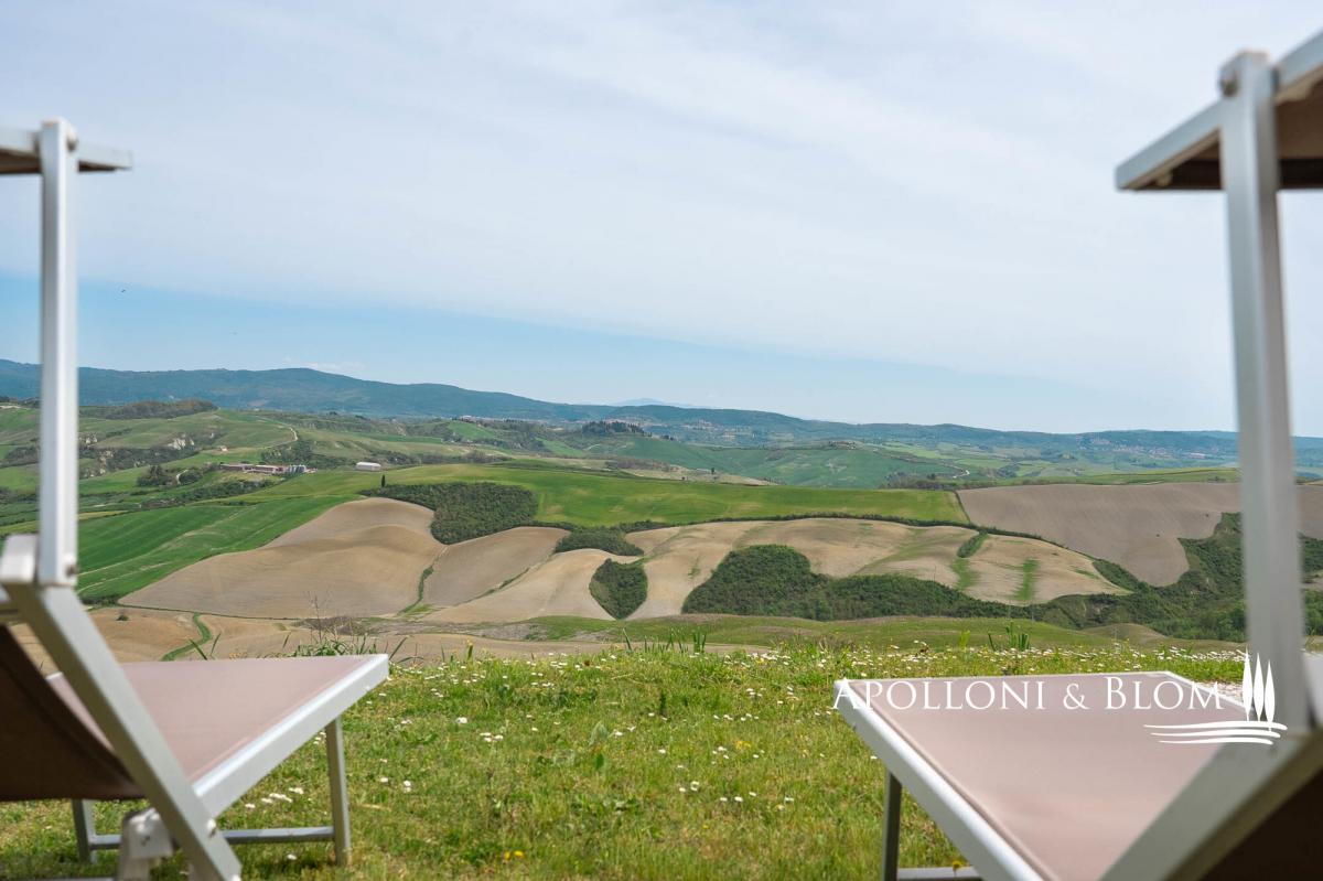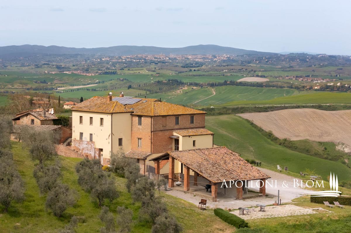 65-hectare charming country estate for sale restored with agriturismo, solar energy, stunning views over the Crete Senesi and Siena’s skyline. Set just south of Siena, dominating the soft waves of clay hills stretching to the horizon, this distinctive estate offers a rare combination of scenic beauty, historical charm, and forward-thinking sustainability. Whether you’re seeking a private retreat, a hospitality venture, or a sustainable lifestyle project in one of Tuscany’s most captivating landscapes, this is an opportunity not to be missed. Positioned at the top of a gentle slope, the property enjoys breathtaking 360-degree views, extending as far as the city of Siena. At night, the countryside transforms into a glowing patchwork of farmhouses and hilltop villages, creating a truly magical setting. The estate includes a carefully restored stone house arranged over three levels and divided into six self-contained—four dedicated to agriturismo and two for private residential use—for a total of 530 square meters and offering a total of 10 bedrooms and 9 bathrooms. Traditional finishes such as terracotta, stone, and wood have been used throughout, preserving the authentic Tuscan atmosphere. A portion of the main house and a barn of 139 square meters are rich in potential for future development—whether as more guest accommodations, artist studios, or additional living spaces. The outdoors star a classic bread oven, barbecue, perfect for relaxing or entertaining. The estate also includes 65 hectares of agricultural land, primarily arable, with enormous potential for farming and olive cultivation. One of the estate’s great advantages lies in its sustainable infrastructure with a solar panel system with photovoltaic installation. The water supply is exceptionally well-structured, with access to the mains city supply, a rainwater collection tank, a deep well, and even a small pond, ensuring both self-sufficiency and environmental responsibility. Located just 9 kilometers from services and within easy reach of Siena, Florence, and the Val d'Orcia, this property offers more than a residence or investment—it’s a long-term vision. PROPERTY Ref: ASC3204 Location: Asciano, Province: Siena, Region: Tuscany Type: 65-hectare/160-acre country estate featuring a 530 sq m/5,704 sq ft three-story stone former farmhouse restored into 6 units, paired with a barn Annex/es: 139,7 sq m/1,503 sq ft (11x12,70 mt) barn and a ruin building Year of construction: 1900 Year of restoration: 2004. The residential and agriturismo areas are in excellent condition; one housing unit requires complete restoration Land/Garden: courtyard of 700 sq m/7,534 sq ft with a bread oven, barbecue, and outdoor shower. The land covers 65 hectares/160 acres, mostly arable Parking: outdoor spaces and in the barn Utilities: Fixed telephone network: available Internet: wi-fi available Heating: LPG + pellet stove, fireplaces, photovoltaic system with solar panels on the roof of the main farmhouse Water: mains city supply Electricity: available Water waste: Imhoff tank The property is owned by a private individual. Distance from services: 9 km/5.5 miles Distance from main airports: Firenze 97 km/60 miles, Perugia 99 km/61 miles, Roma 256 km/159 miles Gravel road: 100 m/0.06 miles Layout: Ground Floor: reception area and small shared lounge; Apartment 1: living room with dining area and kitchen; 2 double bedrooms with large windows and direct garden access; 2 bathrooms, storage room; Apartment 2: living room, dining area, kitchen; 1 double bedroom, 1 twin bedroom, 1 bathroom First Floor: Apartment 3: kitchen, 1 double bedroom, 1 bathroom; Apartment 4: living room with dining area, kitchen; 1 double bedroom, 1 bathroom; Apartment 5: living room with fireplace and dining area; kitchen, mezzanine, 2 double bedrooms, 1 bathroom with bathtub, 1 bathroom; Apartment 6: living room with fireplace, dining area; kitchenette, 2 bedrooms, 2 bathrooms- parking