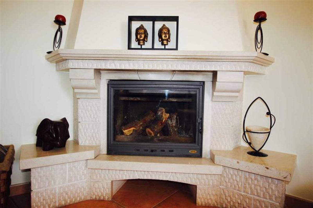 Large lounge area with log burning fire place.