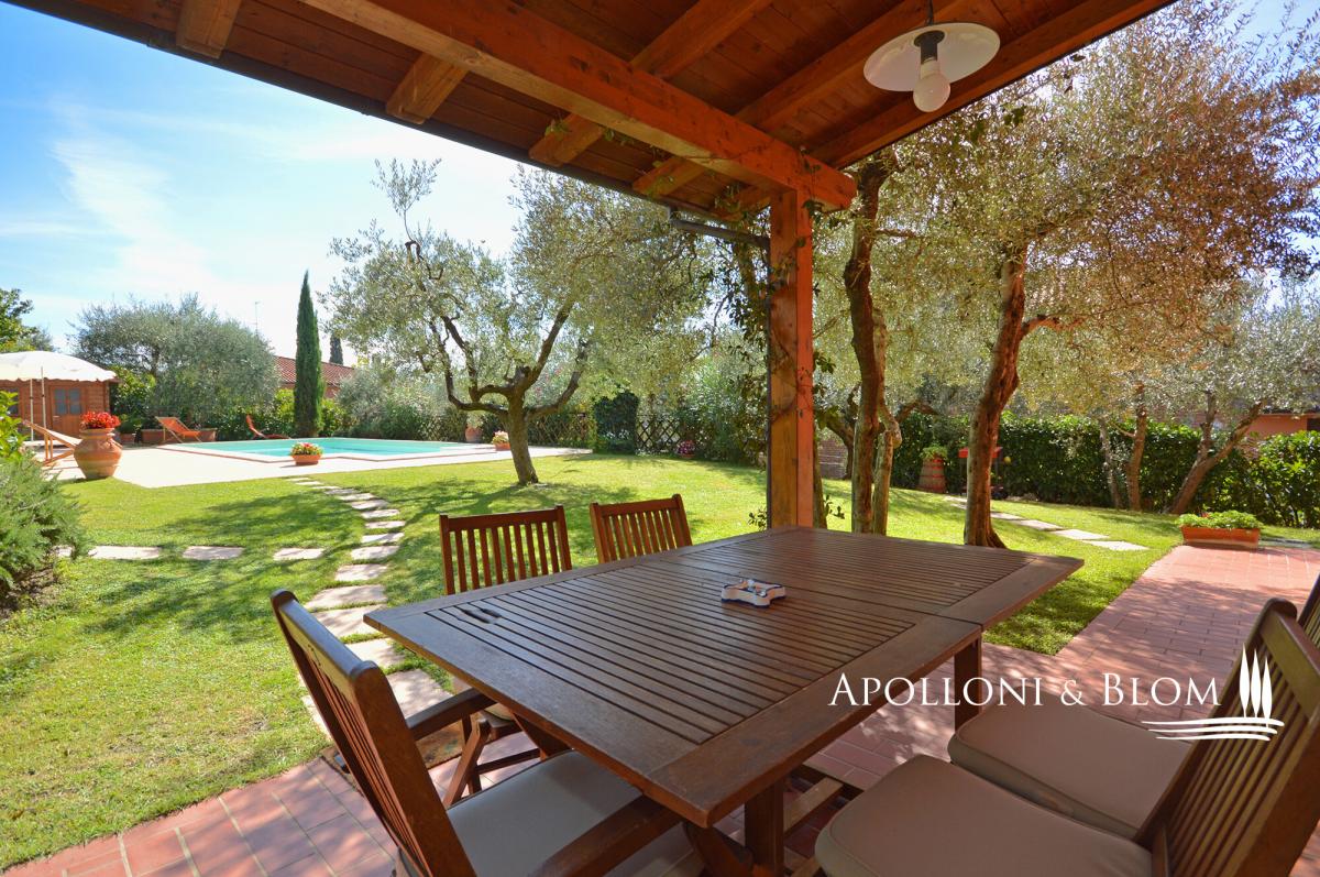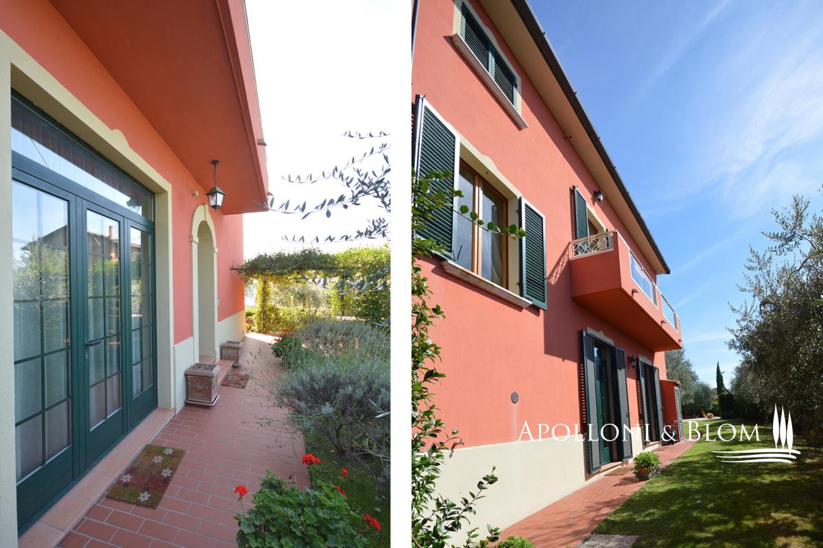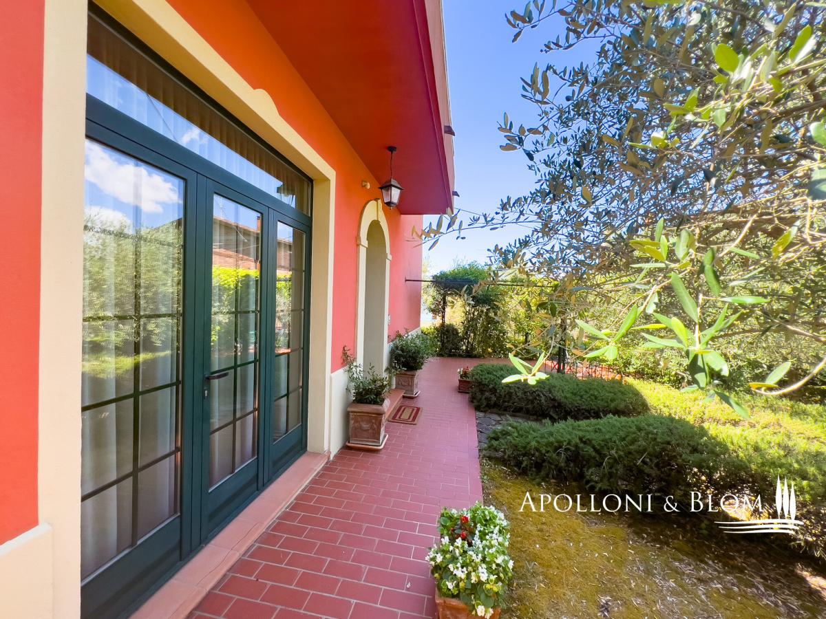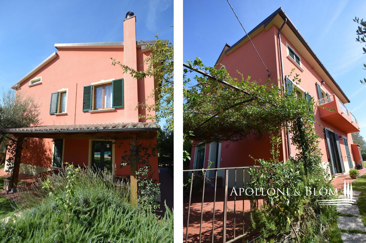 Country villa with panoramic views over Lake Trasimeno, solar energy, air conditioning, garden, and swimming pool for sale near Castiglione del Lago. Nestled in one of Umbria’s most captivating landscapes, just a short stroll from local amenities yet enveloped in total tranquillity, this classic country villa enjoys breathtaking panoramic views over Lake Trasimeno. With its striking façades in rich Pompeian red – a hue that beautifully complements the surrounding natural palette – the villa blends timeless elegance with the rustic charm of the Umbrian countryside, where olive groves, rolling hills and open skies create a setting of rare serenity. Originally built in 1966 and later tastefully renovated, the villa spans 220 square meters over two levels plus a spacious attic. Currently arranged as two self-contained apartments – easily reunified into a single grand residence – the interiors are filled with natural light and generously proportioned. On the ground floor, the entrance leads to a stylish living area with kitchen, study, bedroom and bathroom. French doors open directly onto the landscaped garden, where a splendid private swimming pool forms the heart of the outdoor living space, beautifully framed by lush greenery. Upstairs, the second apartment offers an inviting dining room, kitchen, three bedrooms and a bathroom, along with two panoramic terraces that capture sweeping views of the lake and countryside beyond. The villa’s flexible layout makes it equally suited to private family use or tourist hospitality. Set within approximately 1,500 square meter of fully fenced grounds, the villa offers a wealth of outdoor features: a shaded portico for relaxed lounging, an elegant wrought-iron pergola ideal for al fresco dining, and a wooden shed housing the pool’s technical room and garden storage. The pool itself is seamlessly integrated into its natural surroundings, creating a peaceful retreat for sun-soaked afternoons. Equipped with every modern convenience including pellet stove, fireplace, solar panels for hot water, photovoltaic system, air conditioning and an insulated roof, the villa is also offered fully furnished. Perfectly positioned near the lakeside town of Castiglione del Lago and within easy reach of Perugia and Tuscany, this exquisite villa is a rare find: a harmonious blend of authentic Umbrian charm, contemporary comfort and architectural quality. Whether as a luxurious second home or a savvy investment opportunity, it offers an exclusive retreat in the heart of Italy’s most romantic countryside. PROPERTY Ref: CDL1389 Location: Castiglione del Lago, Province: Perugia, Region: Umbria Type: 220 sq m/2368 sq ft two-story villa plus attic space, garden with portico and pool, solar energy Year of construction: 1966 Conditions: good Garden: 1500 sq m/0.37 acres fully fenced, featuring a wrought-iron pergola with dining area, and a wooden shed used as a technical room for the pool and storage for gardening equipment Terrace/Balcony: on the ground floor, a portico overlooking the garden and swimming pool; on the first floor, two panoramic terraces with lake views Swimming pool: 5x10m. and sundeck Utilities: Fixed telephone network: available Internet: available Heating: methane + pellet stove + fireplace + solar energy for hot water Water: mains city supply + 1 rainwater collection tank for irrigation use Electricity: available + photovoltaic system Water waste: mains city connection Insulated roof Fully Furnished Air conditioning Energy Efficiency Rating: G Distance from services: walking distance Distance from main airports: Perugia 59 km, Florence 144 km, Roma 190 km Layout: Ground Floor: Apartment 1 comprising a portico facing the garden, entrance hall, living room, kitchen, study, hallway, one bedroom, and one bathroom First Floor: Apartment 2 comprising a dining room, kitchen, three bedrooms, one bathroom, and access to the attic- garden