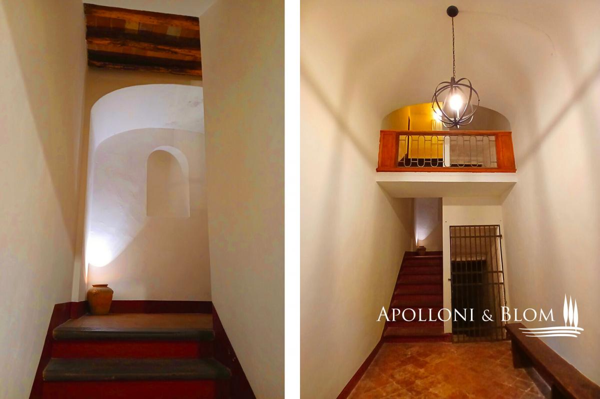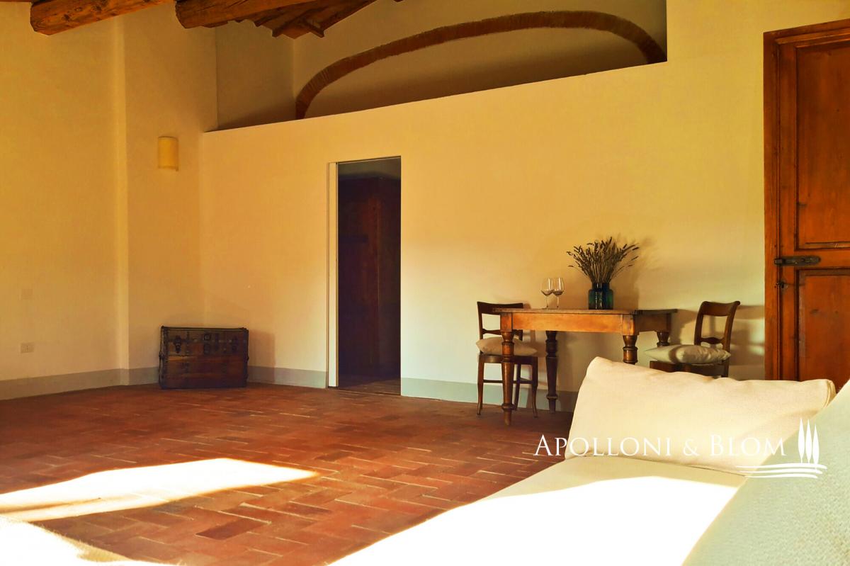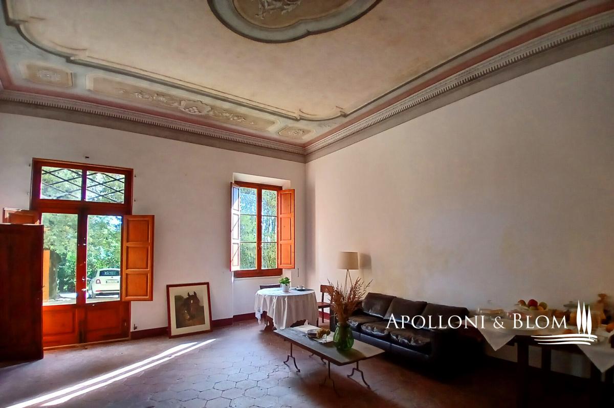 Endless views, solar energy, furnished, 5 hectares of land with paddocks, annexes to convert, for sale in Certaldo, Florence. Set amidst rolling hills that stretch into the horizon, this exceptional portion of a historic villa boast endless sunsets. Perched in an enchanting hilltop location, the property affords unrivalled views over the Florentine countryside and the vineyards of the Chianti, combining the aristocratic elegance of the 19th century with modern comforts and energy efficiency, including integrated photovoltaic systems and air conditioning. This corner section of a villa, originally constructed by a distinguished noble family on the outskirts of Florence, has been meticulously restored to its original splendour and now provides 518 square metres of living space over multiple levels. Entering the villa, one is greeted by a monumental reception hall where frescoed ceilings soar over four metres high, framing an open fireplace and original hand-crafted terracotta floors that speak to centuries of craftsmanship. The ground floor also features a generous entrance hall connecting to the upper levels and to a 50-square-metre vaulted cellar in the basement, a true architectural gem with exposed brickwork, ideal for storing fine wines and hosting contemplative tastings. The living areas flow seamlessly: the first floor is arranged in two independent wings, each comprising a sitting room with kitchen, a bedroom, and a bathroom, offering versatile accommodation suited to either family living or hospitality. Ascending to the second floor, the atmosphere becomes intimate and romantic, with exposed wooden beams and rustic terracotta floors complementing three spacious double bedrooms, each served by sophisticated ensuite bathrooms in a minimalist style with walk-in showers. On the ground floor, with separate access, two large rustic rooms currently used as storage provide excellent potential for conversion into charming living areas. The exterior celebrates the Tuscan landscape: over 5 hectares of land include olive groves, woodland, and pastures complete with fully equipped paddocks for horses. The garden with belvedere, enhanced by a fragrant wisteria pergola and panoramic terrace, offers the possibility of a private swimming pool overlooking the sunset. The estate is further complemented by 110 square metres of annexes, including a barn with an ancient oven, ready to be transformed into exclusive dependences, as well as a 24-square-metre canopy. PROPERTY Ref: CNT3479 Location: Certaldo, Province: Florence, Region: Tuscany Type: 518 sq m/5,576 sq ft semi-detached villa, corner location, on four levels (468 sq m/5,038 sq ft on three above-ground levels, 50 sq m/538 sq ft of vaulted cellar in the basement), garden with belvedere and possibility to build a private swimming pool, 2 agricultural outbuildings totaling 110 sq m/1,184 sq ft, a 24 sq m/258 sq ft shed, agricultural land in a single block of over 5 hectares/12.36 acres consisting of pastures and paddocks for horses, woods, olive groves, arable land, and orchards Land/Garden: over 5 hectares/12.36 acres of land consisting of a landscaped garden with wisteria pergola and Belvedere terrace, mature trees with large shaded areas, possibility to build a private swimming pool, along with 1.13 ha/2.79 acres of olive groves, 0.4 ha/0.99 acres of orchards, 2.55 ha/6.30 acres of woodland and 1 ha/2.47 acres of pasture with paddocks and wooden fences for the owner's horses Utilities: Fixed telephone network: available Internet: available Heating: solar energy, hot/cold air system on the second floor Water: mains city supply Electricity: available + 3.5 kW photovoltaic system Water waste: Imhoff system Air conditioning Antique doors, external fixtures in cypress wood Distance to services: 6 km /3.7 miles Distance to main airports: Florence 40 km /24.9 miles, Pisa 81 km /50.3 miles, Bologna 131 km /81.4 miles Layout: Main residence – 518 sq m/5,576 sq ft Basement: 50 sq m/538 sq ft cellar with brick walls and barrel-vaulted ceiling, with heights ranging from 3.15 to 2.25 metres. Ground Floor: entrance hall with staircase leading to the upper floors and the basement, a grand frescoed reception room with an open fireplace and ceilings over 4 metres high; with separate access, a 60 sq m/646 sq ft storage/utility area comprising 2 rustic rooms First Floor: central landing; on the right wing, a sitting room with kitchen, 1 bedroom and 1 bathroom; on the left wing, a sitting room with kitchen, 1 bedroom and 1 bathroom Second Floor: 3 double bedrooms with ensuite bathrooms, plus an additional room suitable as a dressing room or single bedroom Annexes: 50 sq m/538 sq ft barn currently used as a storage area for horses a 60 sq m/646 sq ft storage building with an ancient oven and wood store a 24 sq m/258 sq ft canopy fitted with photovoltaic panels- garden