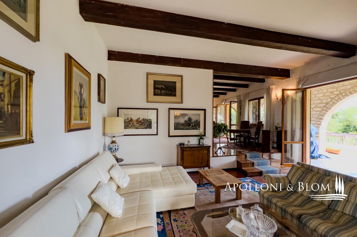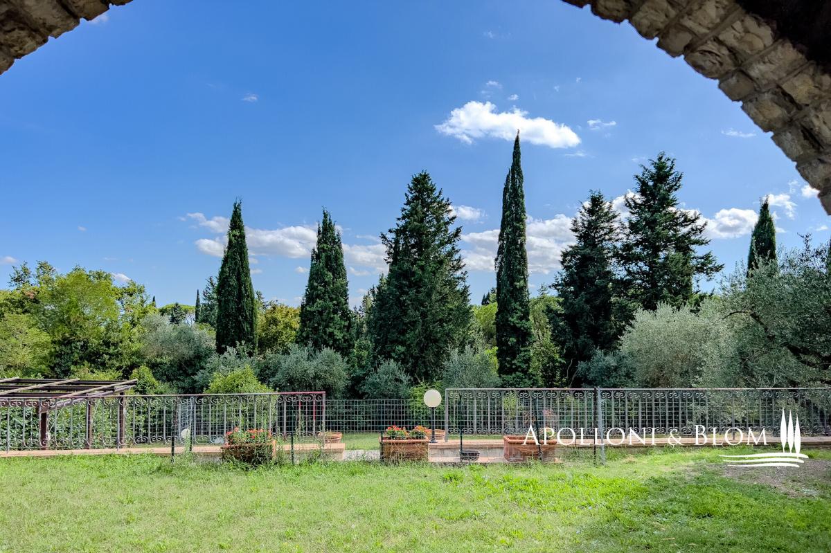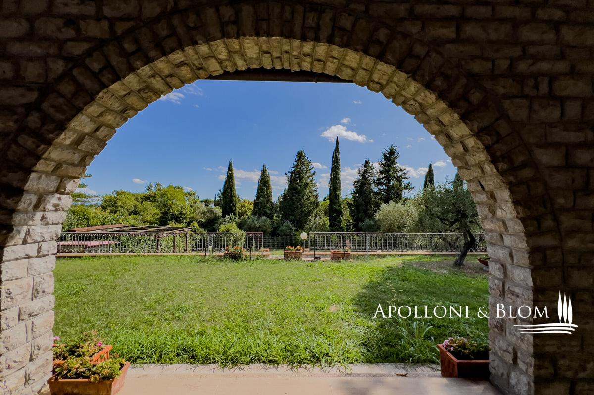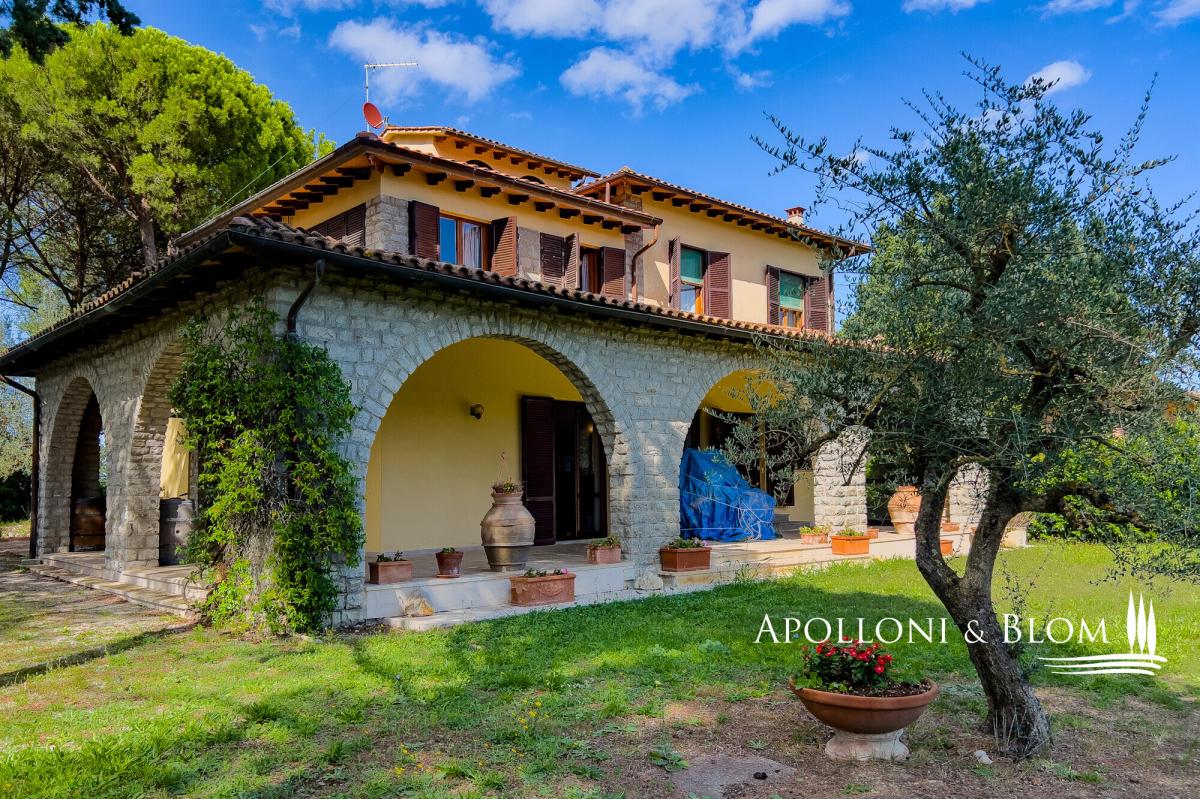 Nestled in a tranquil countryside setting, elegant three-storey villa with a grand stone portico, landscaped gardens and a panoramic swimming pool, for sale near Cetona. A ready-to-live villa exuding authentic Tuscan charm where timeless elegance meets modern comfort. Just one kilometre from the heart of Cetona, one of the most enchanting medieval towns on the border of Umbria and Tuscany, Villa Il Gran Portico enjoys a privileged south-facing position, bathing the interiors and gardens in natural light throughout the day. The residence unfolds across approximately 383 sq m (4,122 sq ft), arranged over three levels, and is embraced by a meticulously kept garden, complete with a panoramic swimming pool, shaded avenues of trees and with dual access: a grand driveway for vehicles and a separate pathway reserved for pedestrians. The stone portico, with its five arches sweeping across two façades, serves both as a distinguished entrance and as an elegant outdoor living area, the ideal stage for Tuscan days and evenings year-round. Inside, the villa captures the true spirit of the countryside: terracotta floors, exposed wooden beams, generous proportions and an atmosphere of understated refinement. On the ground floor, an elegant double reception with French doors opening onto the portico flows into a dining area with a fireplace. The kitchen, centred around a convivial island, offers dual garden access, an architectural arch and a second dining area with fireplace, creating a warm and welcoming heart of the home. The first floor reveals a dramatic double-height landing leading to three spacious double bedrooms, all air-conditioned and finished with parquet floors, served by two bathrooms. A large study, equally suited as a fourth bedroom, provides access to the attic, ideal for additional storage. The lower ground level accommodates service areas including laundry, technical rooms, a wine cellar and a garage. Its location is particularly privileged: only minutes from the A1 Autostrada del Sole and Chiusi railway station, a short drive to the celebrated thermal baths of San Casciano dei Bagni and within easy reach of the most captivating hill towns of both Tuscany and Umbria. A home that perfectly balances the serenity of the countryside with the convenience of proximity to essential services. PROPERTY Ref: CET3349 Location: Cetona, Province: Siena, Region: Tuscany Type: villa arranged over three levels, approx. 344 sq m/3,703 sq ft plus a basement garage of 39 sq m/ 420 sq ft with garden, swimming pool and two entrances to the property Year of construction: Year of restoration: Conditions: excellent Garden: 3000 sq m/ 0.74 acres fully enclosed, with a tree-lined driveway and two gated entrances Swimming pool: 12x7m, maximum depth 1.9 m, with sun terrace and technical rooms Utilities: Fixed telephone network: available Internet: available, to be connected Heating: methane Water: mains city supply + 1 well Electricity: available Water waste: mains city connection Distance from services: 1km Distance from main airports: Perugia 66km, Florence 140km, Rome 188km Gravel road: 200 mt Layout: Basement: Large utility room and garage, storage, cellar and plant room. Ground Floor: Entrance hall with wooden staircase to the upper floor, spacious double reception on split levels with fireplace and access to the outdoor living area under the portico, kitchen with central island and dining area with fireplace, one bathroom with window. First Floor: Striking double-height landing leading to three double bedrooms, all with air conditioning, two bathrooms, and a large study (or fourth bedroom) with access to the upper floor. Second Floor: Attic used for storage- garden