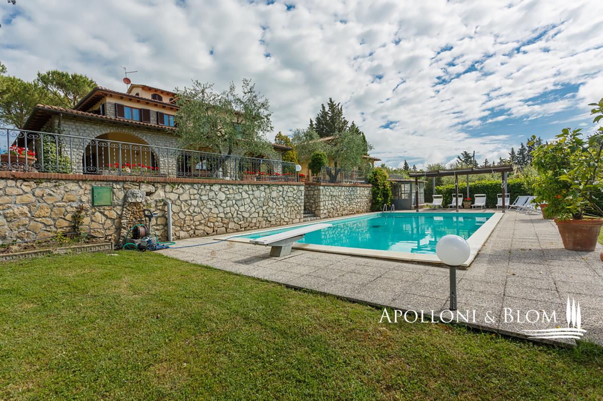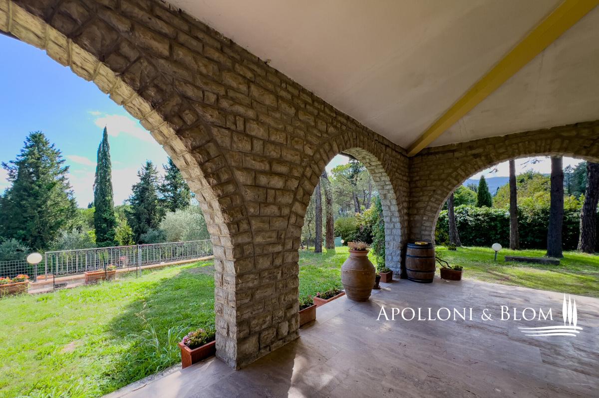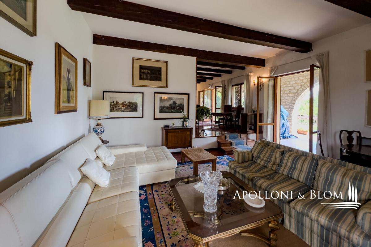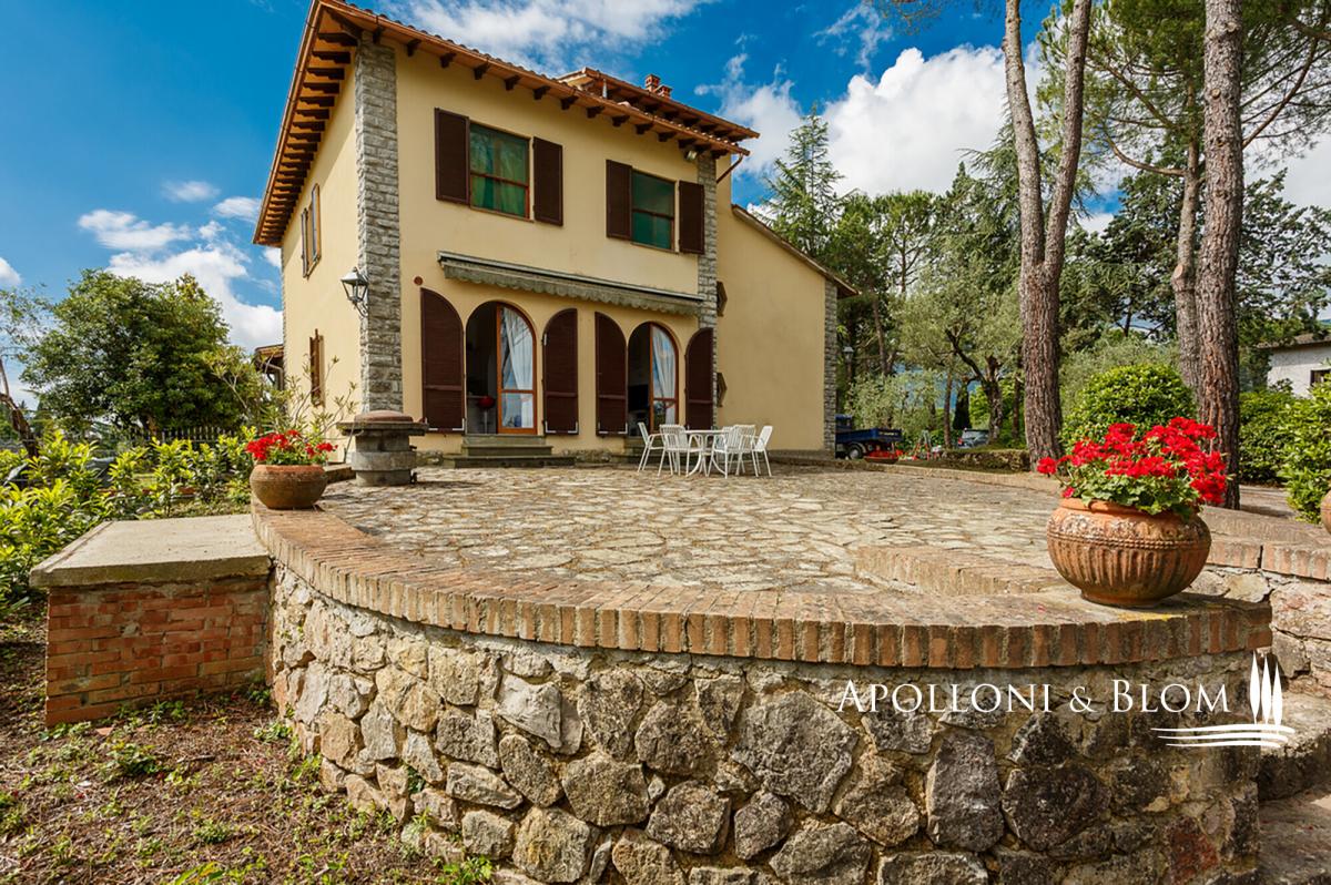 Nestled in a tranquil countryside setting, elegant three-storey villa with a grand stone portico, landscaped gardens and a panoramic swimming pool, for sale near Cetona. A ready-to-live villa exuding authentic Tuscan charm where timeless elegance meets modern comfort. Just one kilometre from the heart of Cetona, one of the most enchanting medieval towns on the border of Umbria and Tuscany, Villa Il Gran Portico enjoys a privileged south-facing position, bathing the interiors and gardens in natural light throughout the day. The residence unfolds across approximately 383 sq m (4,122 sq ft), arranged over three levels, and is embraced by a meticulously kept garden, complete with a panoramic swimming pool, shaded avenues of trees and with dual access: a grand driveway for vehicles and a separate pathway reserved for pedestrians. The stone portico, with its five arches sweeping across two façades, serves both as a distinguished entrance and as an elegant outdoor living area, the ideal stage for Tuscan days and evenings year-round. Inside, the villa captures the true spirit of the countryside: terracotta floors, exposed wooden beams, generous proportions and an atmosphere of understated refinement. On the ground floor, an elegant double reception with French doors opening onto the portico flows into a dining area with a fireplace. The kitchen, centred around a convivial island, offers dual garden access, an architectural arch and a second dining area with fireplace, creating a warm and welcoming heart of the home. The first floor reveals a dramatic double-height landing leading to three spacious double bedrooms, all air-conditioned and finished with parquet floors, served by two bathrooms. A large study, equally suited as a fourth bedroom, provides access to the attic, ideal for additional storage. The lower ground level accommodates service areas including laundry, technical rooms, a wine cellar and a garage. Its location is particularly privileged: only minutes from the A1 Autostrada del Sole and Chiusi railway station, a short drive to the celebrated thermal baths of San Casciano dei Bagni and within easy reach of the most captivating hill towns of both Tuscany and Umbria. A home that perfectly balances the serenity of the countryside with the convenience of proximity to essential services. PROPERTY Ref: CET3349 Location: Cetona, Province: Siena, Region: Tuscany Type: villa arranged over three levels, approx. 344 sq m/3,703 sq ft plus a basement garage of 39 sq m/ 420 sq ft with garden, swimming pool and two entrances to the property Year of construction: Year of restoration: Conditions: excellent Garden: 3000 sq m/ 0.74 acres fully enclosed, with a tree-lined driveway and two gated entrances Swimming pool: 12x7m, maximum depth 1.9 m, with sun terrace and technical rooms Utilities: Fixed telephone network: available Internet: available, to be connected Heating: methane Water: mains city supply + 1 well Electricity: available Water waste: mains city connection Distance from services: 1km Distance from main airports: Perugia 66km, Florence 140km, Rome 188km Gravel road: 200 mt Layout: Basement: Large utility room and garage, storage, cellar and plant room. Ground Floor: Entrance hall with wooden staircase to the upper floor, spacious double reception on split levels with fireplace and access to the outdoor living area under the portico, kitchen with central island and dining area with fireplace, one bathroom with window. First Floor: Striking double-height landing leading to three double bedrooms, all with air conditioning, two bathrooms, and a large study (or fourth bedroom) with access to the upper floor. Second Floor: Attic used for storage- garden