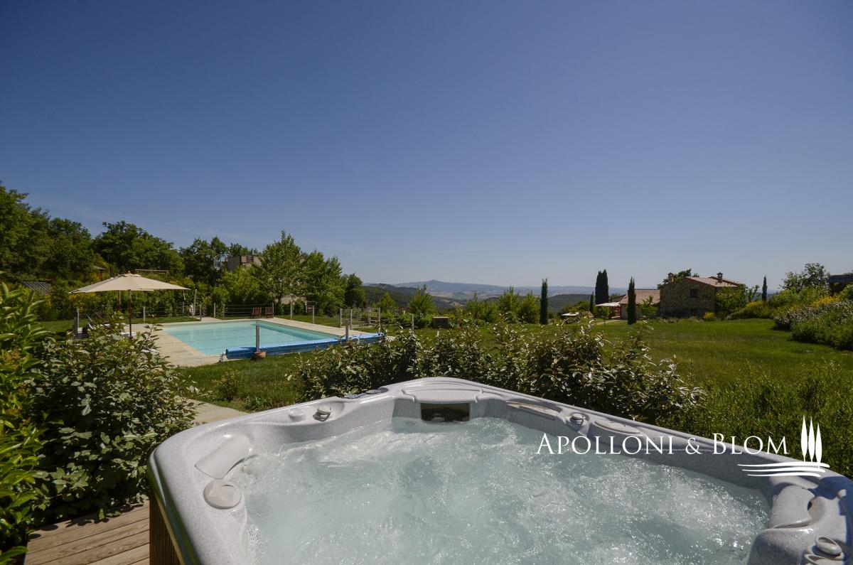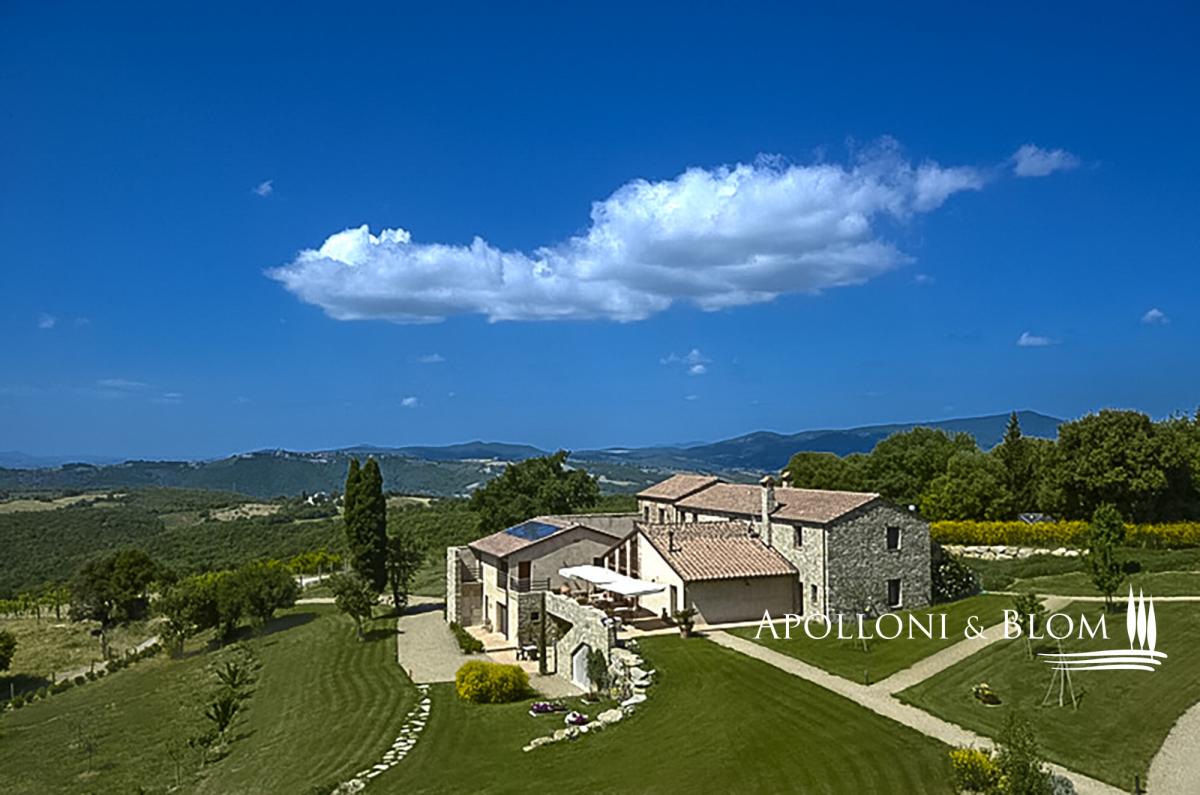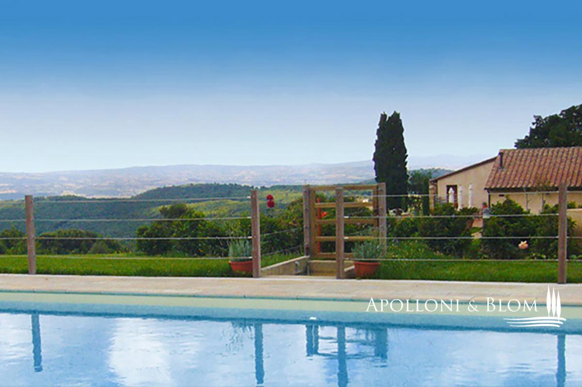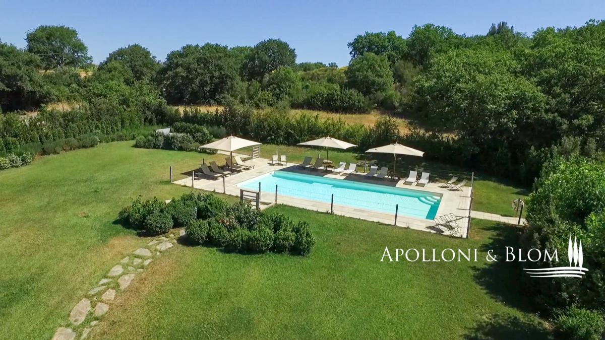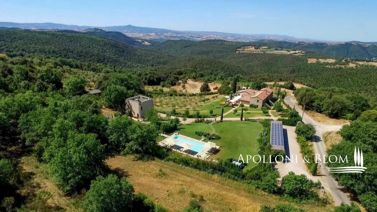 Stylish refurbished 10-bedroom 19th century casale plus guest quarters, pool, sauna, outdoor fitness, solar energy, for sale near Cinigiano. Overlooking the breathtaking Val d’Orcia and Maremma regions, this authentic Tuscan property is surrounded by pristine forests, olive groves, and Montecucco vineyards. This exquisite stone villa, originally from the 1800s, has been meticulously restored and thoughtfully designed by Italian architect Edoardo Milesi, blending the timeless beauty of classic Tuscan architecture with the principles of bioarchitecture, renewable energy, and luxury modern amenities. The main villa spans 750 square meters (8073 sq ft) and houses ten spacious bedrooms, twelve bathrooms, and generous living areas adorned with high wooden-beamed ceilings, elegant fireplaces, and charming stone and terracotta floors throughout. Panoramic terraces extend from the villa, offering captivating views of the serene landscape. Every detail has been considered, with double-glazed wooden doors and windows, a cozy TV room, a relaxing lounge area, a pantry, and a laundry room. A short distance from the main house, the newly built two-bedroom guest villa features a unique rooftop terrace, an ideal space for sunbathing and relaxation, plus a garage and a laundry room. The 1.5-hectare (3.7 acres) park is an outdoor paradise, offering a panoramic swimming pool, a jacuzzi, a fully equipped fitness area, a music therapy system in the woods, a Finnish sauna, and a charming wooden cottage with one bedroom, perfect for those seeking a tranquil night immersed in nature. Energy efficiency is a key focus, with solar panels, photovoltaic systems, and three wells providing water for automated irrigation. The property also boasts air conditioning in every room, a 12-camera video surveillance system, fire protection, and WiFi coverage, extending even to the outdoor spaces. This is a rare opportunity to embrace the authentic Tuscan lifestyle, whether for personal enjoyment with family and friends or as a remarkable setting for hosting guests on unforgettable vacations. PROPERTY Ref: GRO3235 Energy Efficiency Rating: C and D Location: Cinigiano, Province: Grosseto, Region: Tuscany Type: fully refurbished 1040 sq m/11194 sq ft classic Maremma Country Manor including a 750 sq m/8073 sq ft former stone farmhouse with 10 bedrooms, a separate 250 sq m/2690 sq ft 2 bedroom-guest villa, 40 sq m/430 sq ft wood guest cottage, surrounded by a 1.5-hectare/3.7 acres park with pool, outdoor jacuzzi and fitness center, Finnish sauna and music therapy system in the forest Year of construction: 1800 Year of restoration: 2018 Conditions: excellent, partly furnished Land/Garden: 1.5-hectare/3.7 acres fully fenced park featuring a fully equipped outdoor fitness area in the woods with a Finnish sauna and music therapy system in the forest Swimming pool: 14x7m with a stone paved sundeck, outdoor jacuzzi and shower Parking: 12-covered carport (roofed with solar panels/photovoltaic system) + 20-seat uncovered parking area + 1 box Utilities: Fixed telephone network: available Internet: available WiFi indoor and outdoor areas Heating: LPG system with radiators + cold/hot electric air splitWater: mains city supply + 3 wells for irrigation use fitted with automatic irrigation system Electricity: available + photovoltaic system with solar panels Water waste: Imhoff tank Partly furnished 12-camera video surveillance system Fire prevention system The property is owned by a private company. The location, for privacy, is approximate. Please note all measurements cited are approximate Distance from services: 10km/6 miles Distance from main airports: Florence 135km/83 miles, Roma 210km/130 miles Layout: 750 sq m/8073 sq ft former stone farmhouse stone farmhouse: living room with fireplace, TV room, relaxation area, rooftop terrace, pantry, laundry, 10 bedrooms, 12 bathrooms Dependance of 250 sq m/2690 sq ft: living room/kitchen with fireplace, panoramic roof terrace, 2 bedrooms, 3 bathrooms, laundry, garage and cellar Wooden cottage of 40 sq m/430 sq ft: 1 bedroom, 1 bathroom- garden